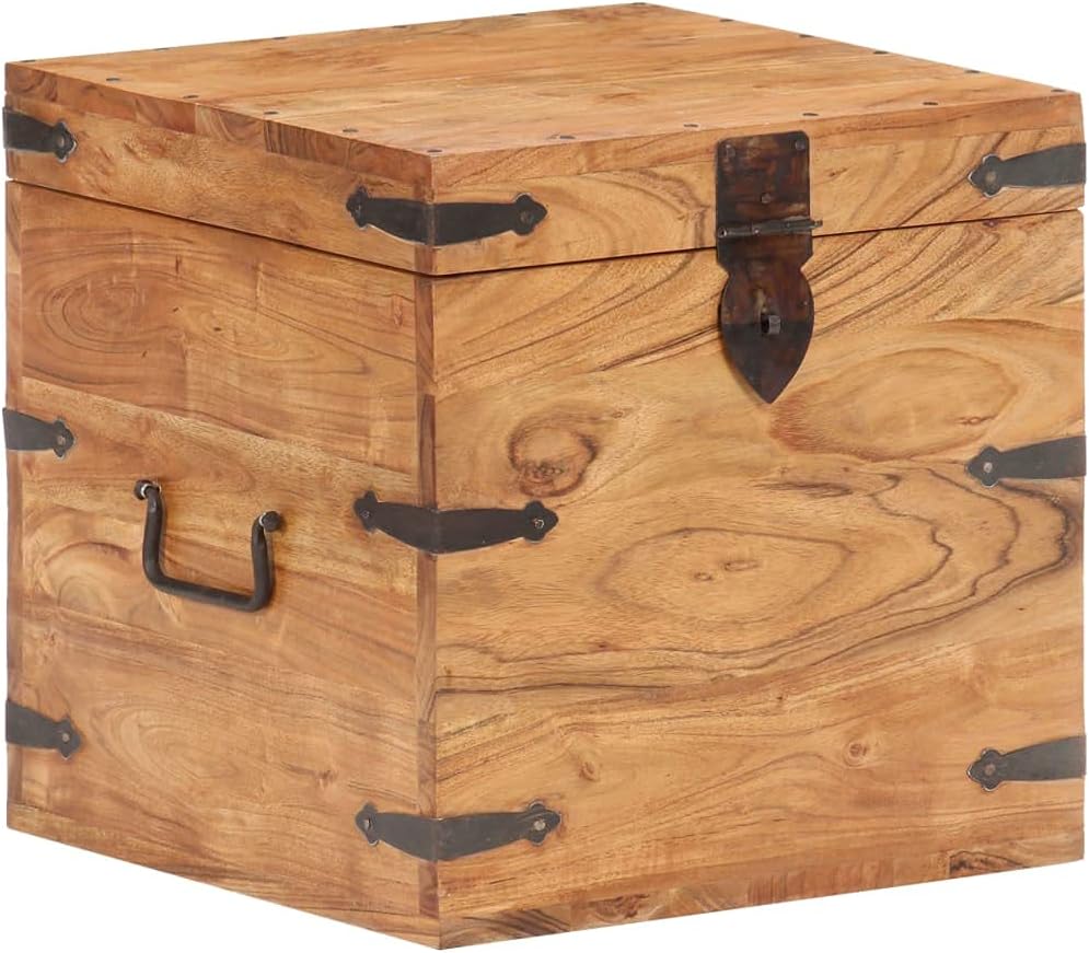 This Solid Acacia Wood Storage Chest is a handy furniture piece that mixes storage with style, perfect for any room. Whether you're storing blankets in the bedroom or toys in the living room, its natural wood grain finish and minimalist vibe make it a lovely addition to your decor.Spacious Interior: The chest has loads of room, keeping your space tidy and clutter-free. It easily holds everything from seasonal items to cherished keepsakes.Reliable Locking System: This trunk's secure locking system makes sure your belongings are safe from unwanted access. You can relax knowing your valuables are secure.Timeless Aesthetic: The smooth texture and natural wood color fit in well with all sorts of decor styles, making it a versatile choice for different spaces.Quality Craftsmanship: Built from solid acacia wood, this chest is tough and can handle everyday use. Its solid structure ensures it will stick around for years as a dependable storage solution.Functional and Stylish: Great for living rooms, bedrooms, or hallways, this storage chest is not only practical but also doubles as a statement piece. It enhances your interior while keeping your things in check. Color: Brown Pattern: Wood grainShape: SquareMaterial: Wood Solid Acacia woodIndoor/Outdoor: Indoor OnlyCover Included: NoRoom: Living RoomDimensions: 15.7 in x 15.7 in x 15.7 in (W x L x H)Surface Height: 15.7 inWeight: 28.62 lbsLadder: NoDelivery Contains: Wooden chestAssembly Required: YesRecommended Number of People for Assembly: 1