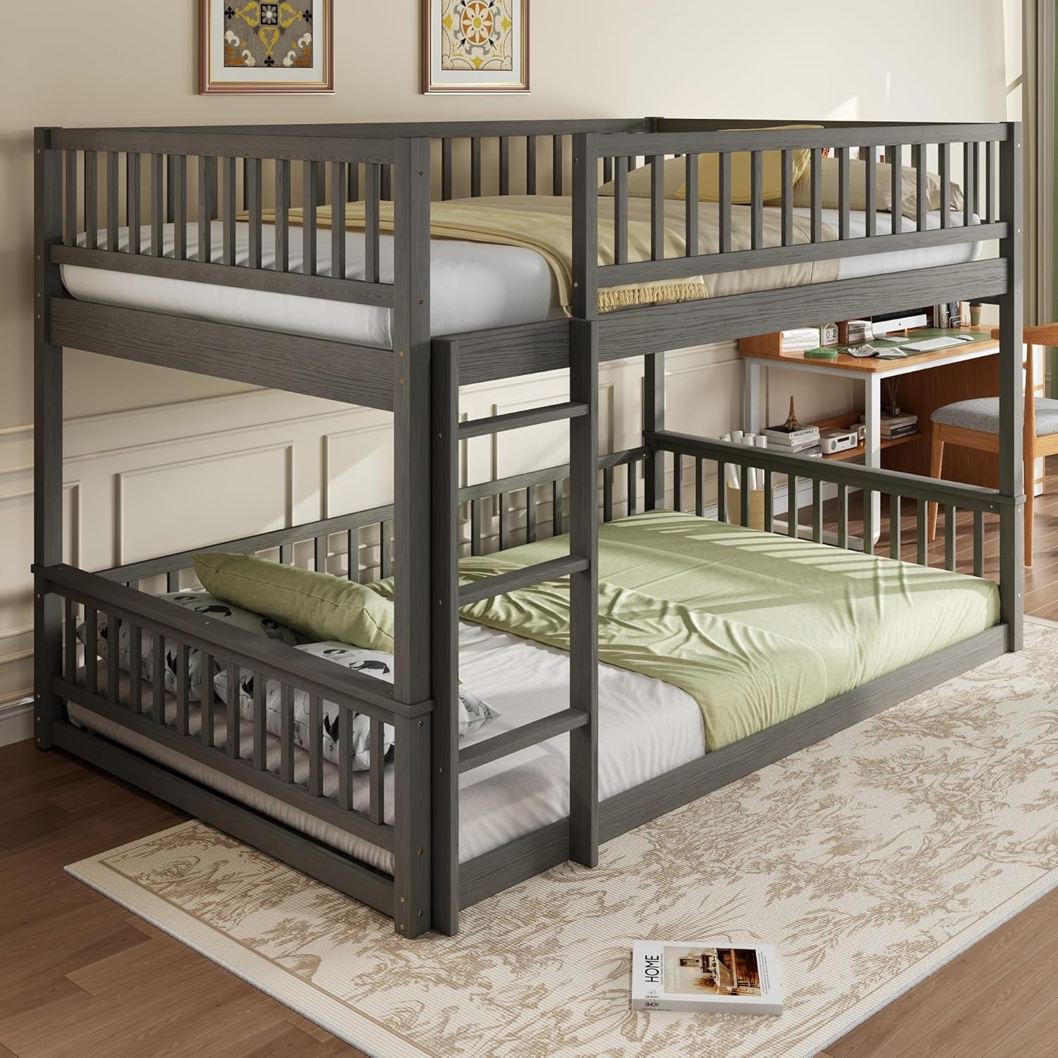 ♬ This queen size bunk bed is a rare large size bunk bed on the market, which is the best choice for space storage lovers or families with limited room space. Simple appearance and wood color/white finish will fits any room style. You can decorate this bed with your kids, giving full play to kids' imagination. Crafted from Pine Wood+MDF, the bed features sturdy frame and safety guaranteed. The pull out trundle retains the same sturdy construction as the daybed and can support a standard twin XL sized mattress for extra sleeping space. ● Description Material Pine Wood+MDF Size Queen Numbers of Package 2 Spring Box No need Assembly Required Yes Origin Vietnam ● Dimensions Overall Product Dimension 85.4''L x 64.2''W x 63''H Queen Bed 82.3'' x 61'' Trundle Bed 80.3'' x 39.3'' Total Height 63'' Recommend Mattress Thickness of Bed(Upper/Down) 6''/8-10'' Overall Product Weight 206lbs Bed Weight Capacity 600lbs ● Notes: Manual measurement has been used,there may be some reasonable error. All the pictures are taken by actual samples, slight chromatic aberration may occur due to lighting or display.