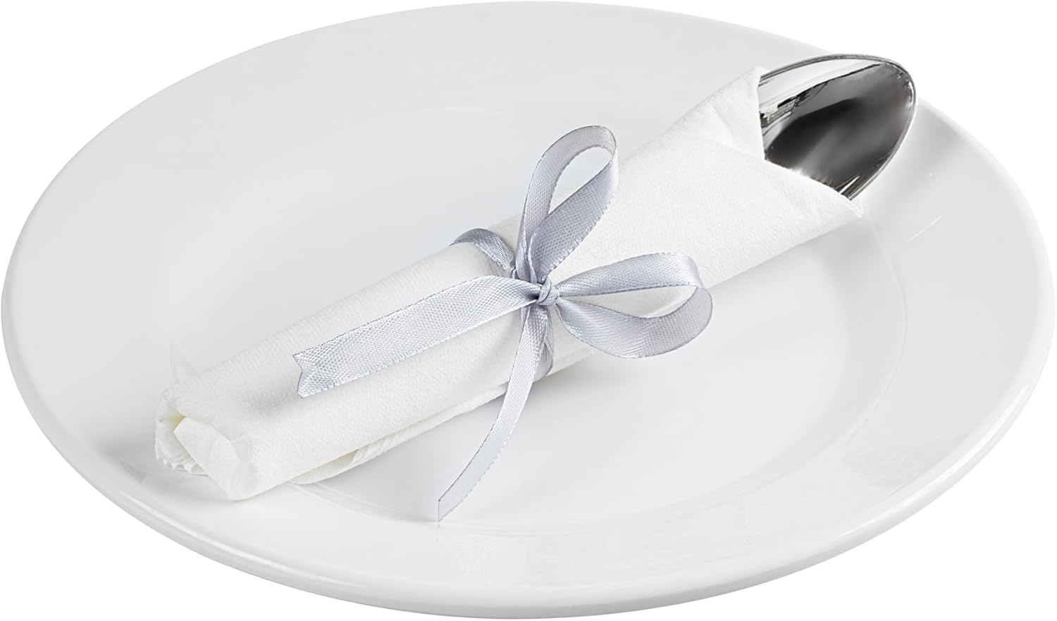 Create a beautiful table setting with our Moderna Silver Cutlery Sets. Featuring a spoon, fork, and knife in each set, these plastic silverware sets provide a convenient solution for serving any dish. Tied with an elegant silver ribbon, this plastic cutlery adds a modern touch to your café, restaurant, catering event, and more. Built from premium plastic, these silver plastic cutlery sets are fully disposable and reprocessable for easy disposal after use. Wrapped in a high-quality napkin, these silver plastic utensils allow customers to enjoy meals and avoid messes. The utensils in each of these silver plastic cutlery sets measure 7.3 inches long. Shipped in a 100 count box.