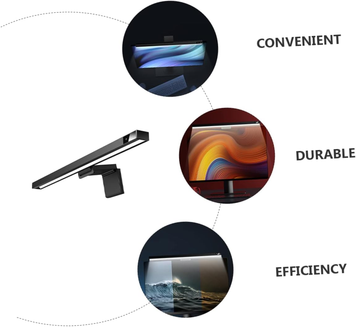 Package List 1 Characteristics - Color temperature: 2900K/4200K/6500K LED Computer Lamp. - Power: 5W(max) Computer Monitor Light. - Size: About 45.00X9.20X9.20cm/17.68X3.62X3.62inch LED Computer Screen Lamp. - Color: Black USB Monitor Lamp. - Material: ABS LED Screen Lamp. - Levels up your computer reading, computer using or computer gaming experience LED Adjustable Light. - Our computer monitor hanging light allows you to concentrate and boost work efficiency LED Light for Computer. - Also can be a nice birthday your friends, they will like it Desktop Computer Lamp. - Could be used in your home, office, school use, very convenient Computer LED Light. - Made of material, durable for your use Adjustable Screen Lamp.Goods DescriptionLED Screen Lamp A creative night light can be something attractive and special in your room when you use your computer.Adjustable Screen can not only light up your room, but also decorate your house.Screen LED Lamp This USB computer monitor screen hanging lamp is a creative illuminating light