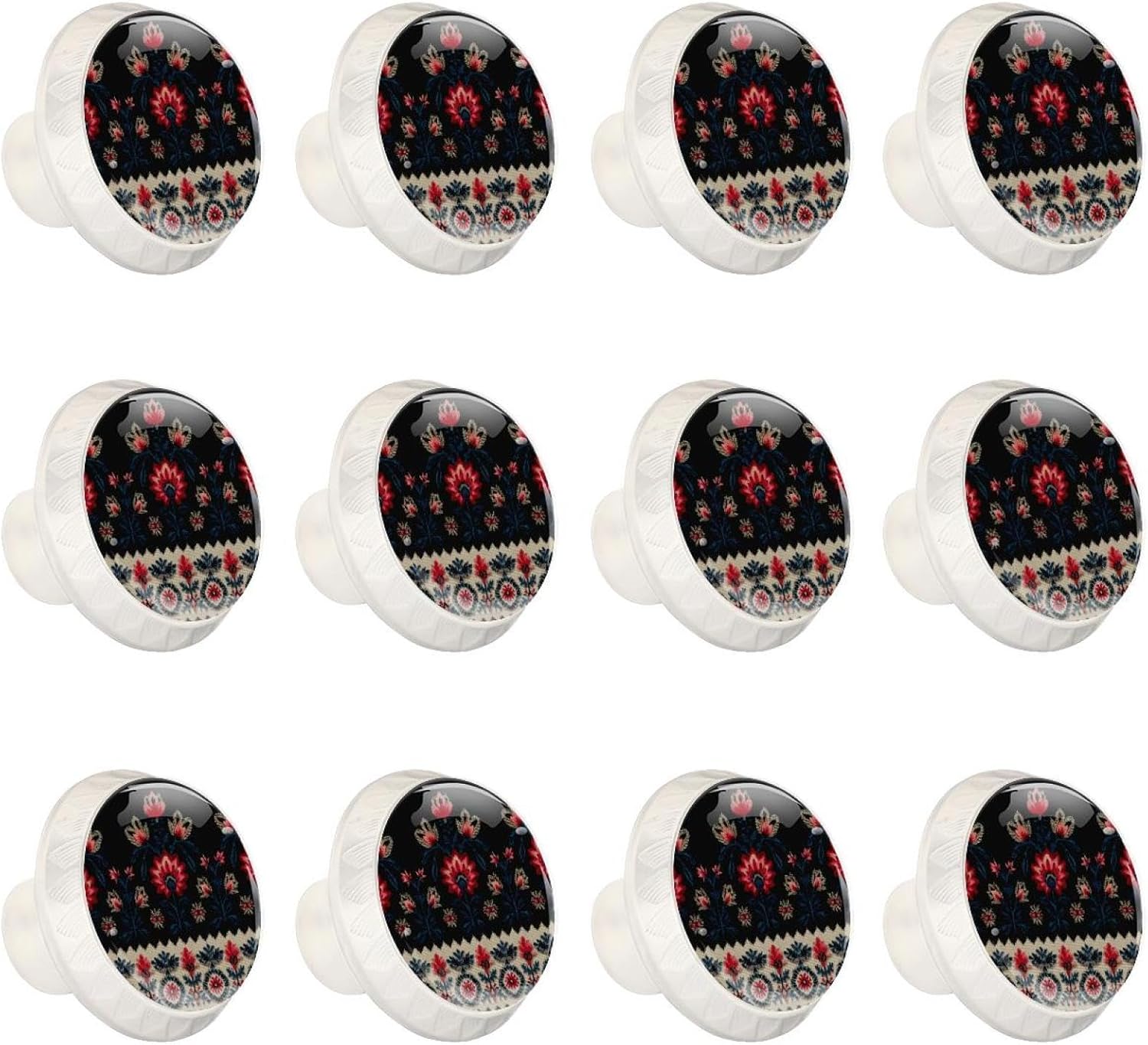 Upgrade your home decor with LORVIES Decorative Cabinet Knobs, Drawer Knobs, Cabinet Pulls & Drawer Pulls.Make them part of your home decor!These cabinet hardware & furniture knobs are the perfect size for your cabinets and drawers.The elegant and unique design, featuring diverse decorative patterns, adds a touch of sophistication to your cabinets.Not only are these kitchen cabinet knobs & bathroom drawer knobs functional, but they also elevate the style of any space.Whether it's your living room, kitchen, bedroom, or bathroom, these dresser knobs, wardrobe knobs & cupboard knobs are versatile and complement various decor styles. Product Information Material: ABS, Glass, Stainless Steel, Paper Size: 1.37" (Length) x 0.66" (Width) x 1.1" (Height) Weight: 0.28 Pounds / 0.13KG Base Color: Black Shape: Round with pattern edge Package Include: 12 x Cabinet knobs, 24 x Screws (Short x 12: 1.1" & Long x 12: 1.37") Notice ! ! ! Please measure and confirm the size of cabinet knobs & drawer knobs you need before purchasing. Please be careful when drilling holes. Manual measurements may be slightly inaccurate. Because of each computer display different colors may be related to physical and picture, hope to understand. LORVIES Service Provide you with a worry-free shopping, thank you! Any problems, please feel free to find up to us, we will try our best to help you solve your problems. Customer service time: Monday to Friday (9.00am-6:00pm) (GMT+8)(Due to the time difference, please allow us 24 business hours to get back to you. Thank you!)