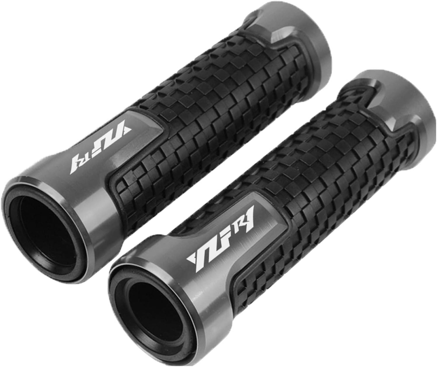 Motorcycle Non Slip Rubber Handlebar Grips 7/8" 22mm CNC Aluminum Bar Ends Plugs With Logo For Yamaha YZF-R1 YZFR1 2015 2016 2017 2018 2019 2020 2021<;; Material: Handbar grip are made of CNC alloy aluminum + non-slip PVC rubber. Bar End are made of 6061-T6 aluminum by CNC.<;; Quantity: 1 pair <;; Color: red, black, blue, gold, green, gray, orange, silver.<;; with smooth appearance and full sense of lines! It is fixed with expansion screws, the color is full and does not fade, and the appearance of the motorcycle is improved. <;; The handlebar end is made of aluminum alloy, with reinforced counterweights at both ends, strong shock resistance and stability, very safe and comfortable driving, and prevent wrist and hand pain caused by handlebar vibration resonance. In short, it is your ideal tool.<;; The grip material is made of aluminum alloy and non-slip rubber. The soft, shock-resistant rubber gel material has excellent absorption capacity for strong vibration, and it is very safe and comfortable to drive.<;; Suitable For: For Yamaha YZF-R1 YZF R1 2015 2016 2017 2018 2019 2020 2021.<;; Package Contents:1 Pair Hand Grips Handle Bar :Left (22mm)& Right (24mm) 1 pair of handle plugs (left + right)Color may have 5% different from the photos shown online.