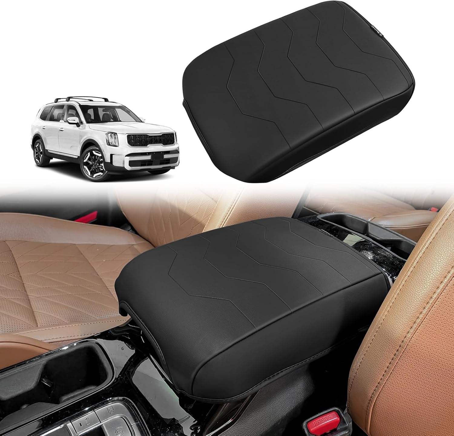 Muslogy Center Console Armrest Cover Compatible with 2026+ Tesla Model Y Juniper / 2024+ Model 3 Highland Comfort Armrest Pad Arm Rest Cushion Non-Slip (25+ |Juniper| Snap-On Black, Hard Cover)