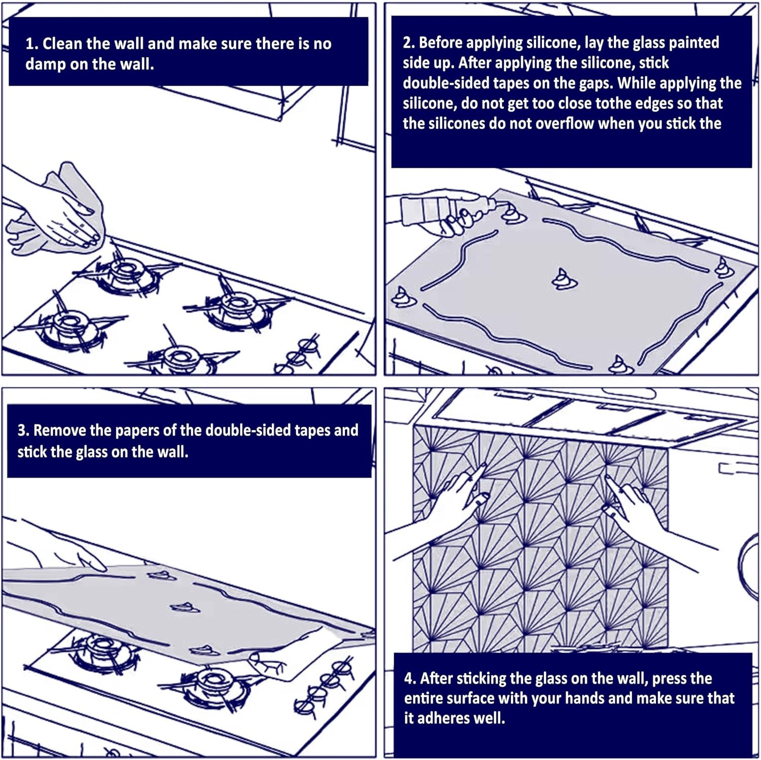 Upgrade your kitchen or bathroom with our Tempered Glass Backsplash – the perfect blend of durability, elegance, and easy maintenance. Designed to protect your walls while adding a sleek modern touch, this premium glass backsplash is ideal for homeowners who value both style and practicality. Crafted from 4mm thick tempered glass, our backsplash is heat-resistant, stain-proof, and highly impact-resistant. Its high-definition back-printed design ensures long-lasting color vibrancy without fading or scratching. Whether you're renovating or building new, this glass panel delivers a flawless finish that transforms any cooking or sink area into a stunning focal point. The glossy surface not only reflects light beautifully but also wipes clean with a simple damp cloth, making it perfect for high-use areas. Material and Build Quality – Crafted from 4mm TEMPERED GLASS , up to 5 times stronger than regular glass, heat-resistant up to 250°C. Surface and Finish – Smooth, non-porous surface resists grease and stains; available in glossy, matte, or frosted finishes. Our backsplashes are versatile and can be used in bathrooms, laundry rooms, and even as decorative wall panels. Our tempered glass backsplashes are heat and flame resistant, making them ideal for use behind gas, electric, and induction stoves. Our backsplashes are designed for easy DIY installation. They can be mounted with adhesive,Glue,free acid silicone or screws. Installation materials are NOT included.