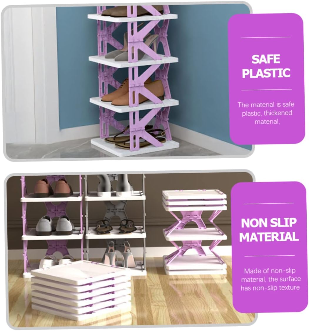 Package List 1 x shoe rack Characteristics -Color:Purple shoe cabinet -Material:Plastic Decorative Shoes Shelf -Size:79.00X27.00X27.00cm/31.05X10.61X10.61in over door shoe rack organizer - The foldable design makes it easy to store when not in use, and also makes it easy to move around Storage Shelf, Shoes Cabinet. - makes this shoe rack stable and sturdy. This is made of quality materials, which has a firm structure and can be used for a long time shoe shelves organizer. -It has a strong load-bearing capacity, and this is also very stable to store multiple pairs of shoes at the same time shoe storage for entryway. -The surface is polished smooth, and there is no burr that can stain or scratch your hands shoe rack for entryway small space. -Multi-layer design, bringing more room to the shoes' storage. The style of this is simple and delicate, which can be with your other furniture Folding Shoes Rack.Goods Descriptionshoe rack for entryway small space Do you have enough space in your home to store your shoes? Are you still looking for a shoe rack that is sturdy and has of storage space? If so, don't hesitate anymore, come and take a look at our shoe rack! The multi-layer design will not take up too much space while storing more shoes