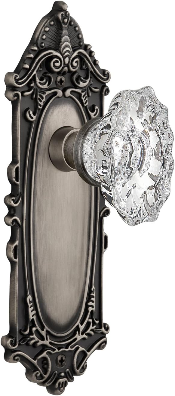 The Victorian plate, with its distinct curvilinear embellishment, is unmistakably old world vogue. Add our Chateau crystal door knob, with its distinctive shape and brilliant sparkle, this unique oval crystal door knob adds an elegant accent to any door. All Nostalgic Warehouse door knobs are mounted on a solid (not plated) forged brass base for durability and beauty.