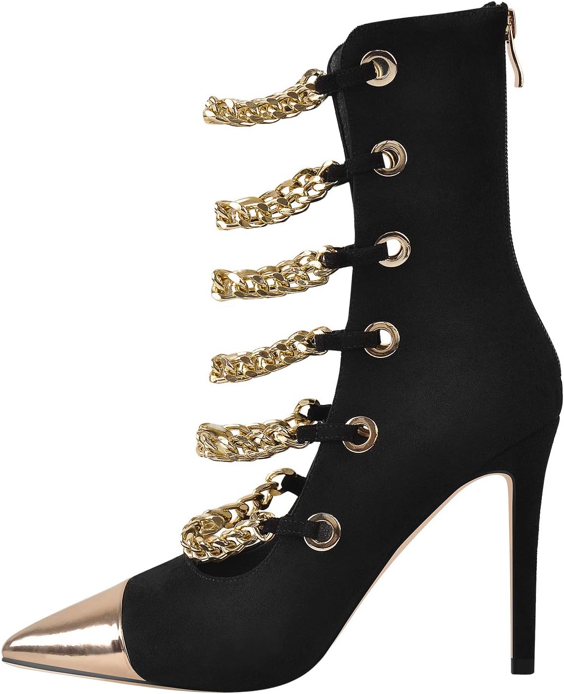 onlymaker Women's Pointed Toe Metal Chains Stiletto High Heel Zip up Boots