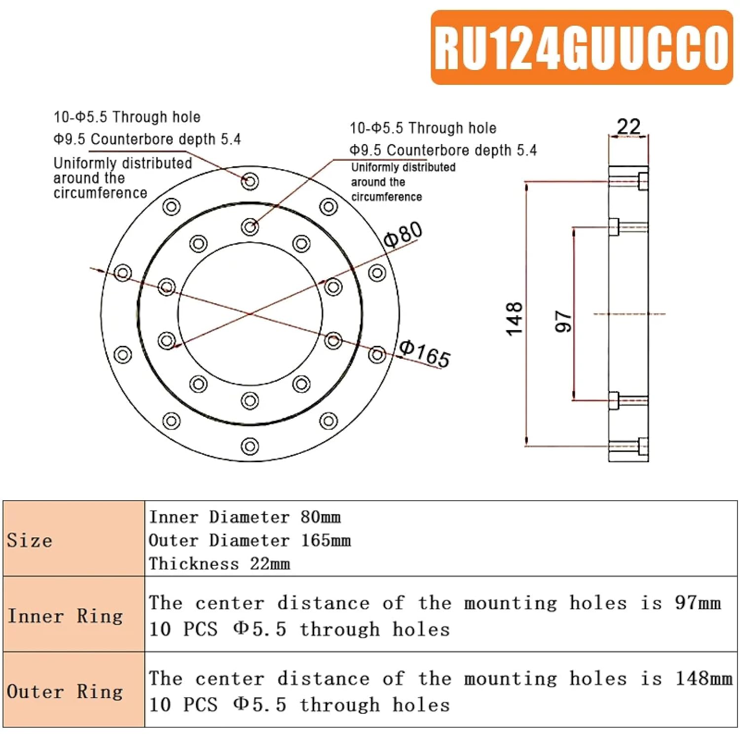 P5 Crossed Roller Bearing, High Precision Rotational Cross Bearing, Heavy Load Capacity (RU148-X)