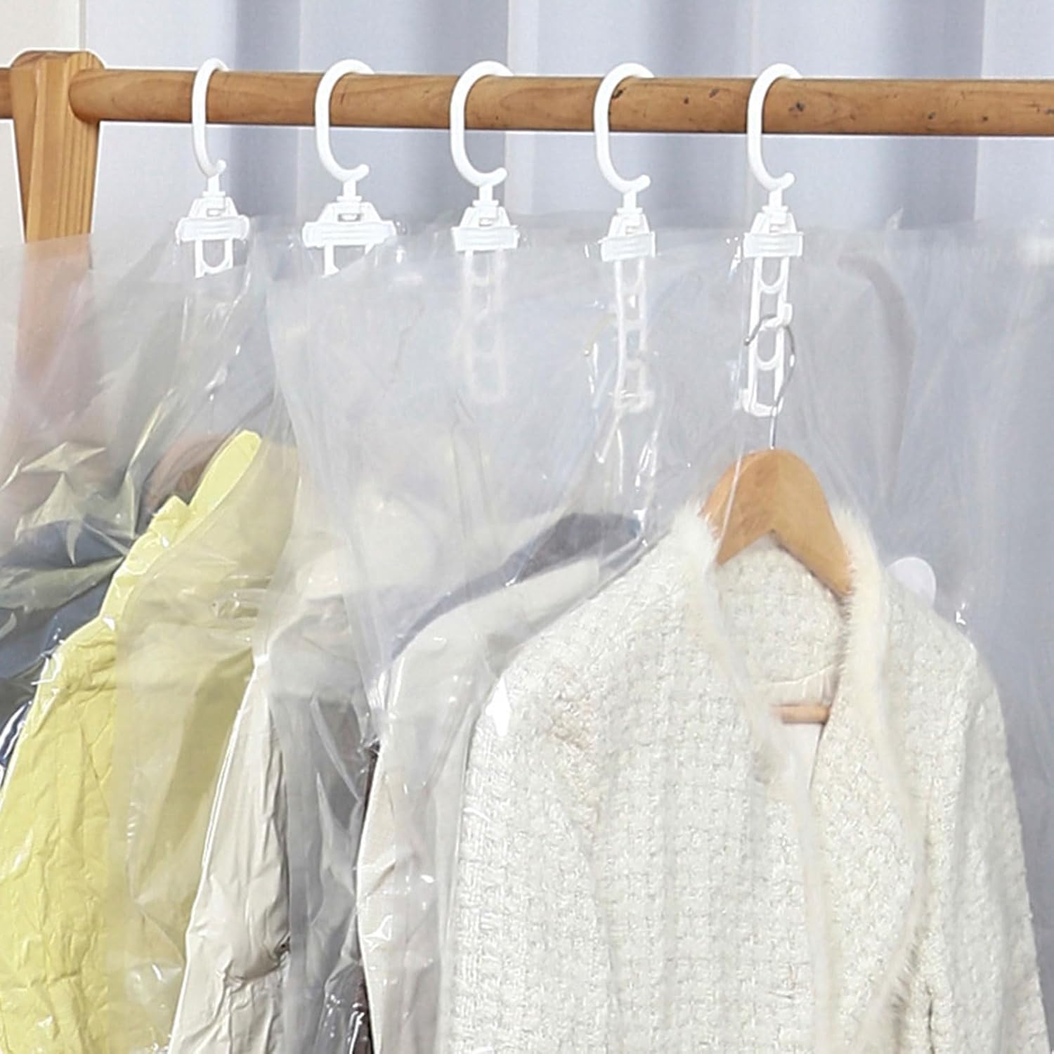 Pack of 6 Multiple Size Hanging Vacuum Storage Bags Offering Wrinkles and ProtectiveFeatures:Maximizes your wardrobe space with this electric pumps vacuum hanging clothes storage bags set, compressing garments into portable size to valuable storage room while keeping clothes wrinkles Crafted from materials, these garment compression bags easy of contents, feature secure sealing against and hanging designs to creasing during storage or travel.Ideal for space conscious apartment dwellers, frequent travelers needing luggage organizers, or families managing seasonal clothing rotations with efficient clothes organizers Perfectly organize closets during off season, protect formal dresses in portable luggage while traveling, or neatly store winter coat in tight home spaces using these versatile bags.This comprehensive set hanging bags to accommodate clothing types from dresses to jackets, providing tailored storage for every wardrobe need.Specifications:Materials: Size 70x90cm/27.56x35.43inch, 70x110cm/27.56x43.31inch, 70x135cm/27.56x53.15inchPackage Includes:1pc Hanging Clothes Bag SetNote:1.Please allow 1-2cm errors due to manual measurement, making sure that you will not mind before order. 2.Due to the differences between different monitors, the picture may not reflect the actual color.