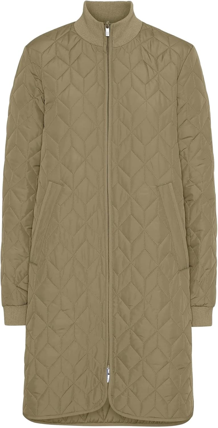 This knee-length, quilted jacket by ILSE JACOBSEN HORNBK offers a perfect blend of femininity and functionality, ideal for transitional seasons. As temperatures dip in autumn, its soft polyester exterior with a subtle quilt and soft inner padding ensures warmth and comfort, even on chilly days. The high rib neckline and cuffs shield against wind, while a 2-way YKK zipper and side slits allow for easy movement, making it great for outdoor activities like walking. Wear it alone or as an extra layer under your favorite raincoat.