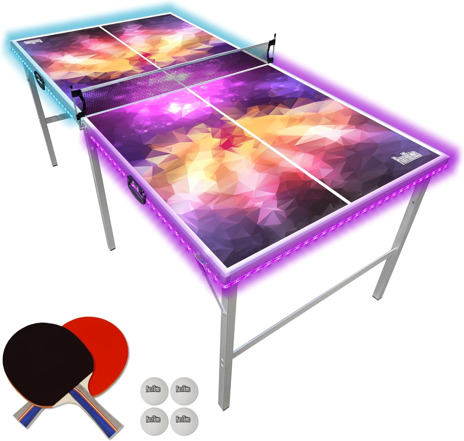 From KPi Entertainment, the proud USA company and manufacturer of PartyPong tables, PartyBars, HEXCUPs, and more, comes next fantastic addition to its party product lineup. Introducing PartyTennis, the Ultimate 3' x 6' Table Tennis Table and your ticket to hours of thrilling gameplay! Are you ready to elevate your table tennis experience to the next level? Look no further than our brand-new 3' x 6' Table Tennis Table, designed with precision and passion to deliver unbeatable fun and excitement for players of all skill levels. Don't be fooled by the smaller, space-saving size! This table plays just as well as a full size table. In fact, the kids especially love this size! The PartyTennis table tennis table features superior build quality, crafted with the best materials. PartyTennis tables ensure durability and stability, allowing for intense rallies and fast-paced matches. The high-quality playing surface guarantees consistent ball bounce. These tables are designed for both indoor and outdoor use. UV-resistant materials ensure that it can withstand the elements and provide years of enjoyment. The 3' x 6' dimensions provide ample space for intense competition while maintaining a compact footprint. When the game is over, our table easily folds up for convenient storage. It's perfect for small spaces or for those who want to keep their table protected from the elements when not in use. No assembly required! We've included everything you need to get started: a net, paddles, and pong balls. You'll have everything upon delivery for a complete table tennis experience. Whether you're a seasoned pro or a beginner just discovering the joy of table tennis, our 3' x 6' Table Tennis Table is the perfect choice. It's designed to deliver endless hours of entertainment, bonding, and competition for players of all ages. Purchase yours today and get ready for epic battles, unforgettable moments, and a whole lot of fun!