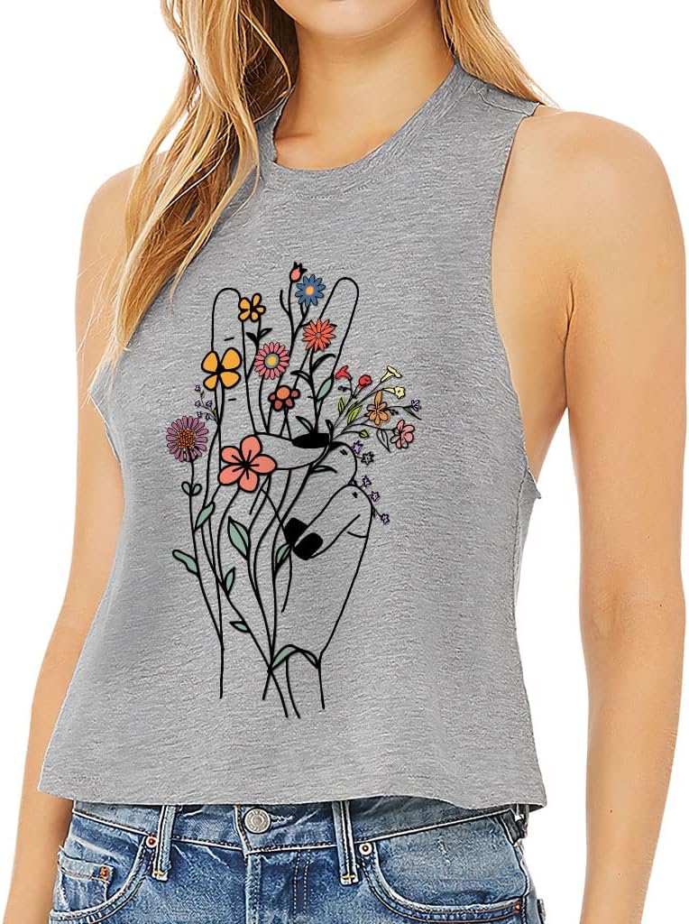 Cute and flattering Peace Sign Racerback Cropped Tank is suitable for most indoor or outdoor activities, such as gym, yoga, running, hiking, beach or relaxing around the house. Pair Floral Women's Tank with your favorite sports bras, especially strappy ones, and high-waisted leggings, then you will enjoy cool and comfortable exercise throughout the summer.