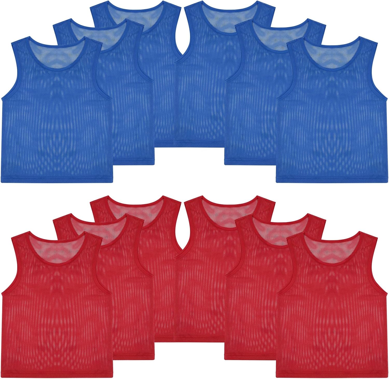 PEASUG Pinnies FeatureNumber of Items: 12 pcs (6 red and 6 blue) or 24 pcs (12 red and 12 blue) Material: Breathable mesh fabricFeature: Durability, Fit, Functionality, Value for money, ColorSize: Small: 21.2L x 15.7W (for heights 45.2-57 inch). Medium: 25.6L x 21.6W (for heights 57-67 inch and weights under 160 lb/73 kg). Measure before purchase to choose correctlyMultipurpose: Suitable for a wide range of sports for Team Practice Vests, Boys' Basketball Jerseys, Girls' Basketball Jerseys, Soccer Clothing, Men's Basketball Jerseys, Sports Fan Jerseys and other team sports