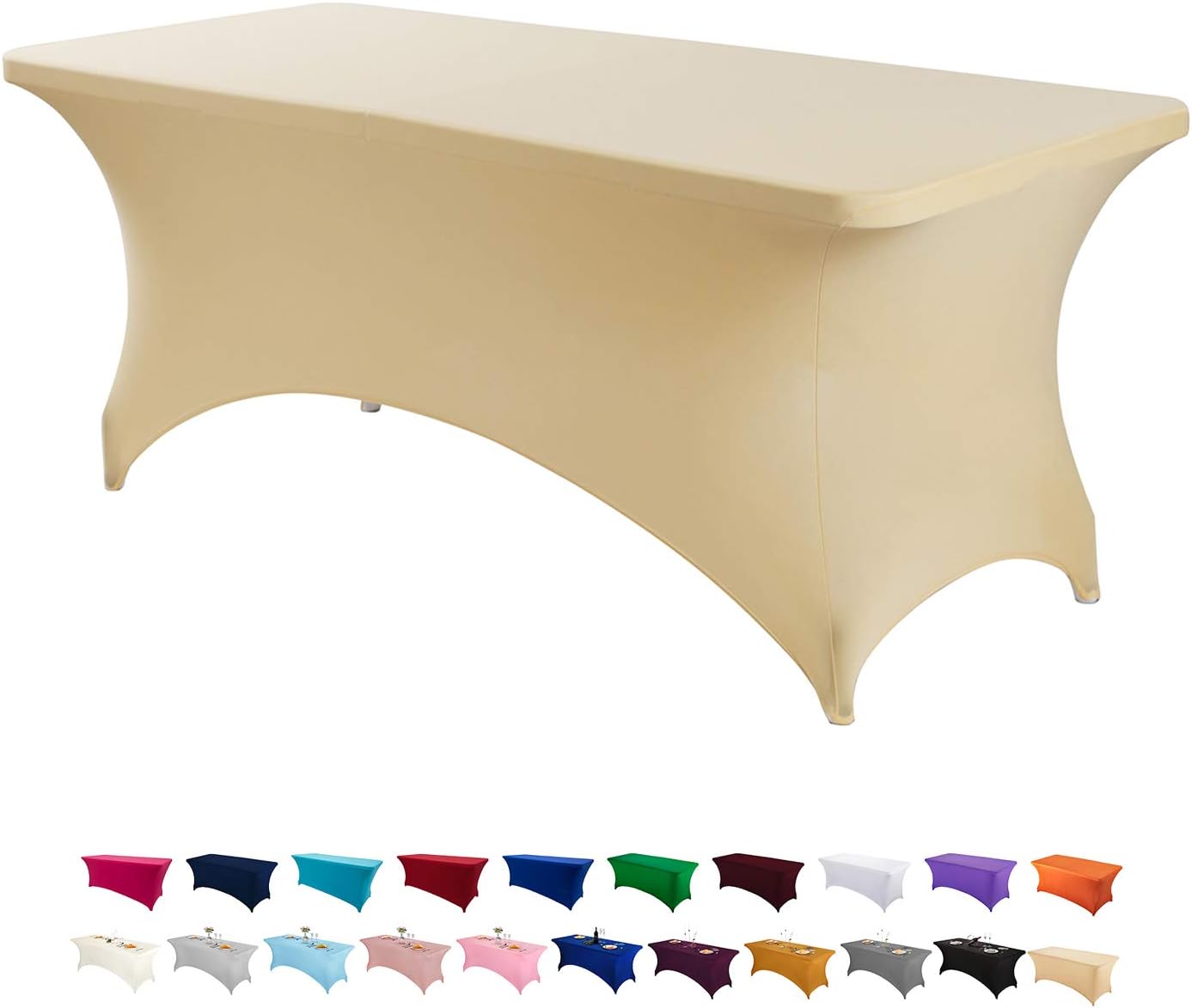 Peomeise 6PCS 6FT Spandex Table Cover Rectangular Stretch Spandex Tablecloth (White,6FT)