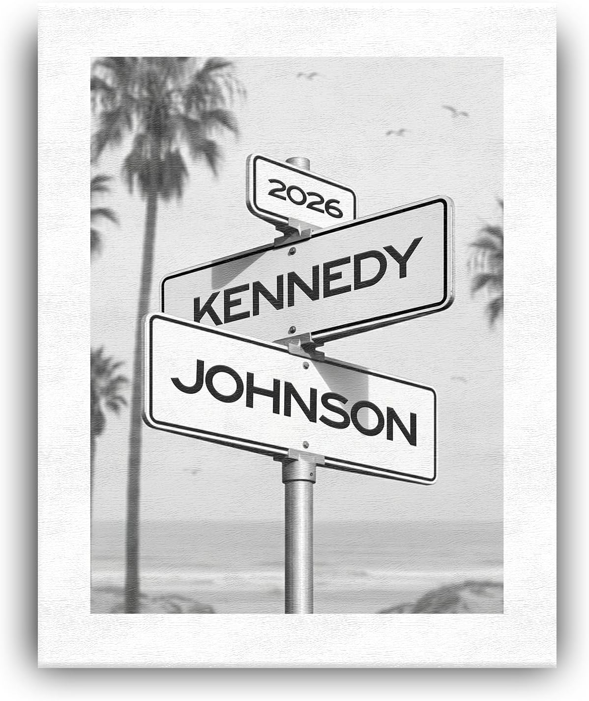 This special personalized gift for couples this Valentine’s Day, Wedding Anniversary or other special occasion features three lines of customization on the road signs and your choice of several backgrounds – Sandy Beach, Starry Night, Cloudy Sky, Cityscape, or Misty Forest. Add a special date on the top sign and your individual names on the other signs, or you can add special text in lieu of a special date. Made in the USA with the highest quality standards. The perfect personalized Valentine’s Day gift, Christmas gift, Wedding Anniversary Gift, or just to say “I Love You” for a her, him, couples, a husband, wife, girlfriend or boyfriend. OPTIONS Stretched Canvas: Our high-quality custom canvas prints add a modern, minimalist look to fit with any wall art aesthetic. As a professional stretched canvas art manufacturer, we offer our traditional stretched canvas in three size options (8"x10", 11"x14" and 16"x20"). Made from sustainable materials, using latex-based inks that are UV/fade resistant and environmentally friendly. Comes ready-to-hang and enjoy. Float Framed Canvas: Our contemporary floating frame options (12"x16" and 20"x24"). Made from sustainable materials, using latex-based inks that are UV/fade resistant and environmentally friendly. Comes ready-to-hang and enjoy. Framed Paper Print: This traditional style features bright white acid-free paper printed with a vibrant image and finished behind acrylic in a sleek black frame. Comes ready-to-hang and enjoy.