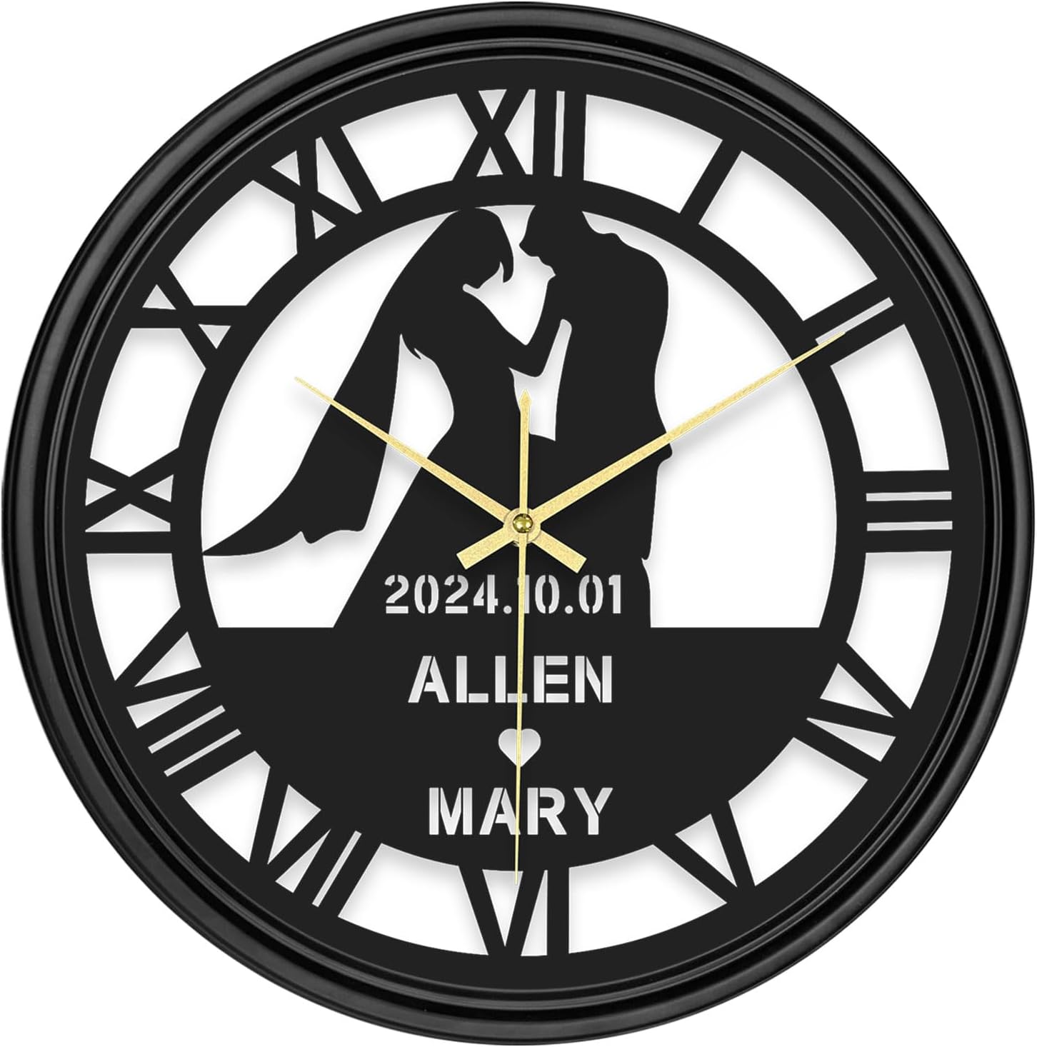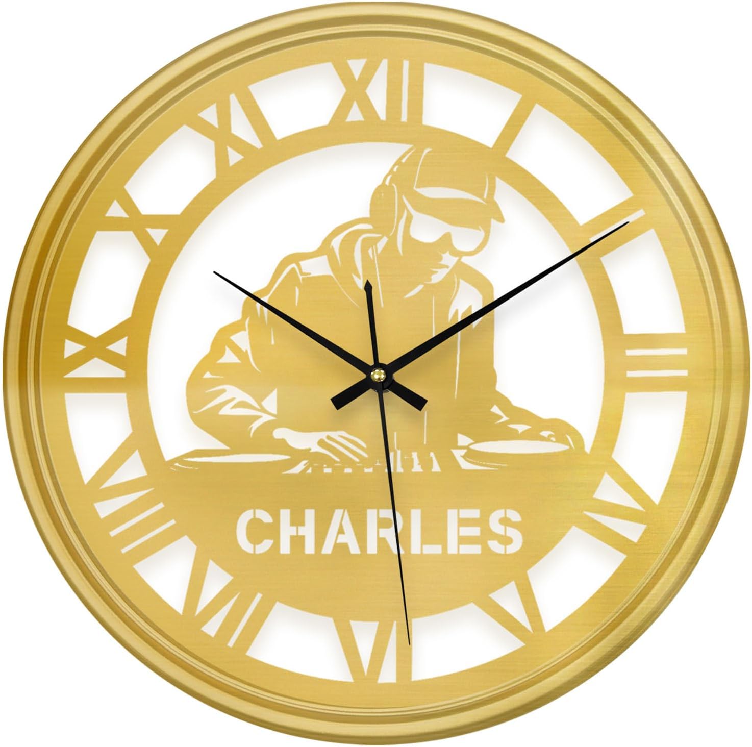 Personalized custom design: You can add your name to this personalized wall clock to create a customized wall clock that is completely your own. This personalized wall clock is designed with eye-catching large numbers to ensure that you can easily read the time. Its large size not only improves visibility, but also makes it a striking focal point on the wall, adding a modern and practical feel to your interior space.Diverse choices: This personalized wall clock includes two colors, black and gold, and twelve patterns such as airplanes, poker, weddings, etc. At the same time, this personalized wall clock is equipped with seven colors of LED lights. You can choose according to the appropriate occasion and favorite styleEasy installation and silent movement: This personalized wall clock is very easy to install. You only need to use the included hook to easily hang the wall clock on the wall without tedious installation steps.