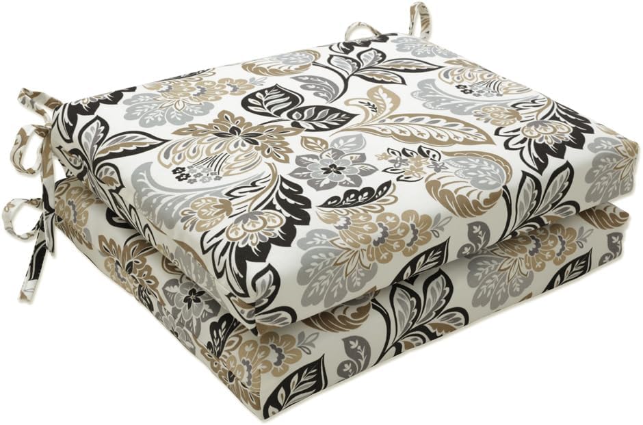 Floral prints never go out of season. This set of two outdoor oversized seat cushions is a timeless choice for a fresh, new look outside. In neutral shades of tan, gray and black, this perfectly-sized floral pops against the off-white ground. You'll love the clean look for a casual outdoor setting. Additional features of these outdoor oversized seat cushions include square corners, 14" ties and recycled polyester fill with zippered closures for easy removal. Also suitable for indoor use.