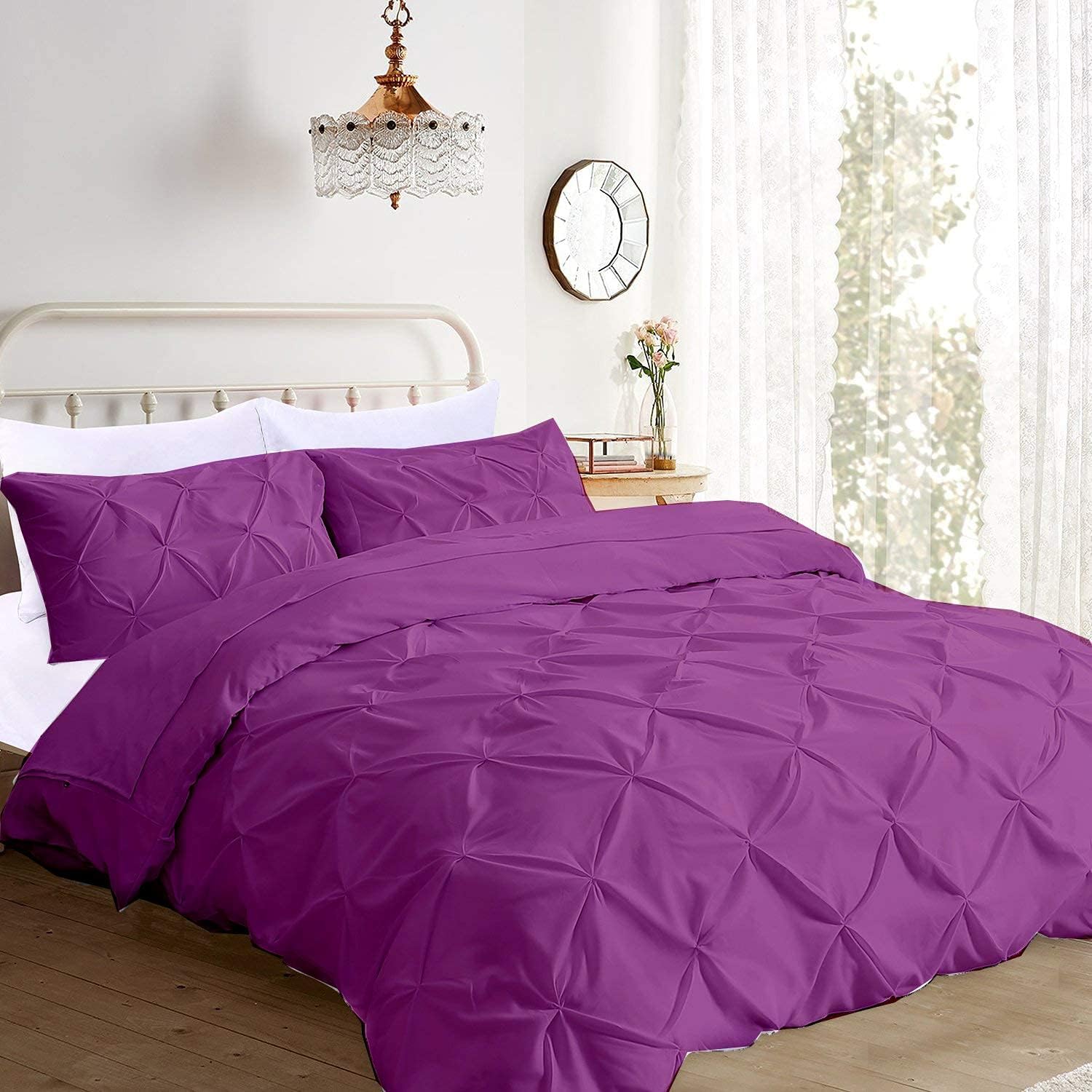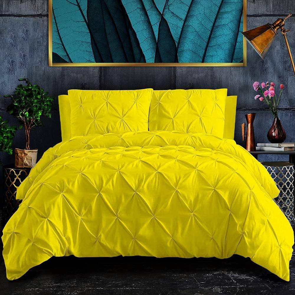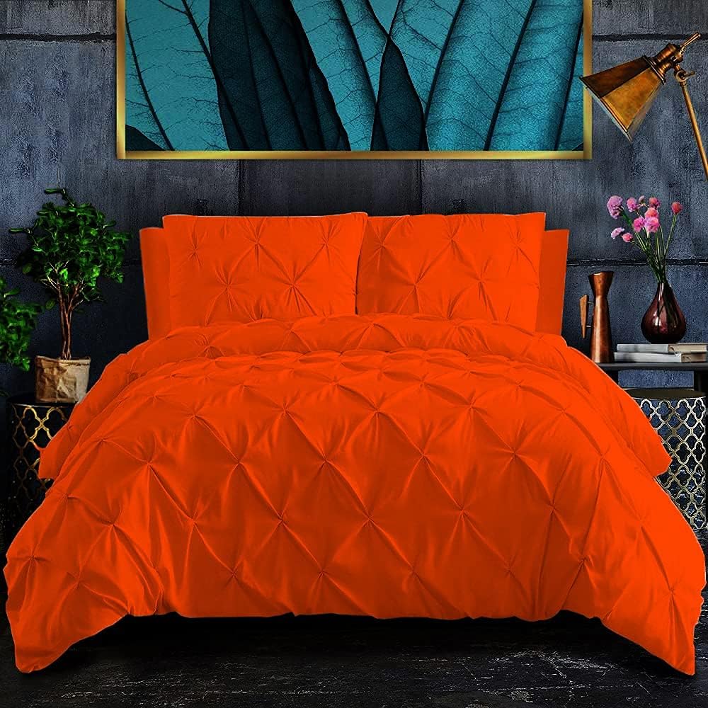 This 750 TC Pinch Pleated Duvet Cover Set will instantly refresh your bedroom décor. The fabric used is soft to touch, lightweight and equipped with strength that you can count on.Bring you an experience of a true luxury and comfortable sleep with exceptionally.100% Cotton Long staple offers strength and durability with exceptional softness. This sheet set is soft because of special peach finish allowing your body to breathe and giving you better sleep. This fabric has desirable properties such as breathing ability, luxurious appearance, and easy cleaning.