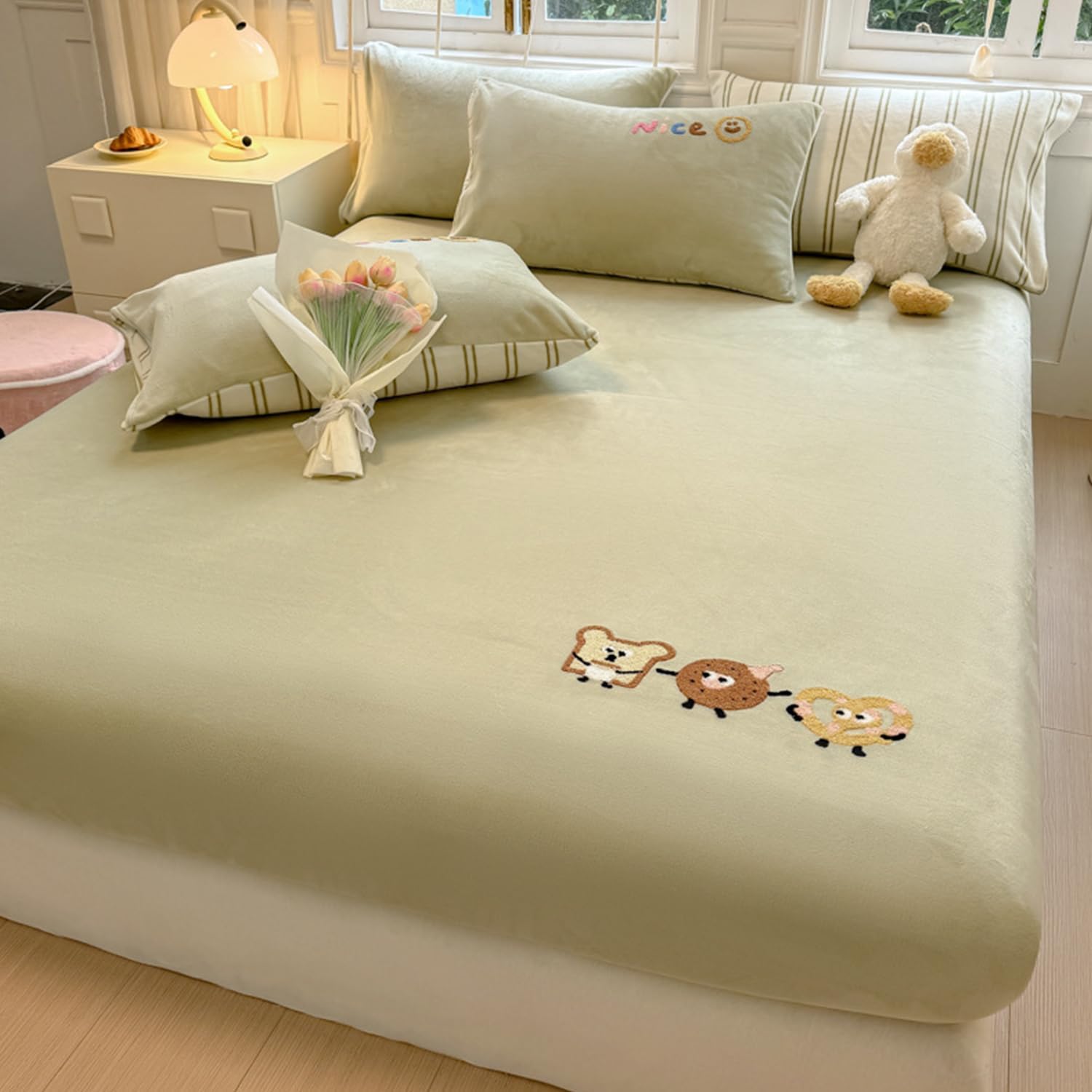 Comfortable and soft milk velvet mattress coverCompletely wrap your mattressAnd the surface is designed with cute and beautiful patternsAdd a fashionable atmosphere to your bedroom or dormitoryFabric:milk velvet fabricFeatures: Warm dustproofPrinting and dyeing process: reactive printing and dyeingWhether it can be machine washed: Can be machine washedColor: yellow,pink,blue,greenSize:90*200cm(35*79in)120*200cm(47*79in)150*200cm(59*79in)180*200cm(71*79in)180*220cm(71*87in)200*220cm(79*87in)Package includes:Mattress protector*1 (pillowcase and mattress not included)notes:1. Please allow 1-3cm error due to manual measurement.2. Due to different monitors, there may be slight color differences. We hope you can understand.