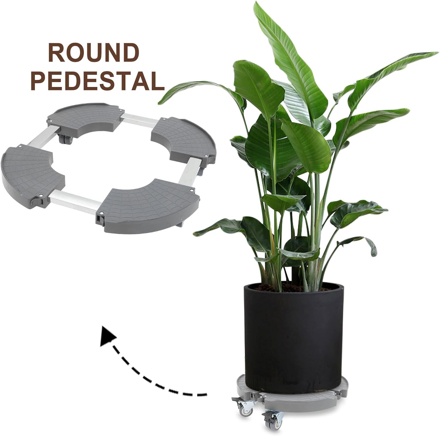 Package Include 4 4 x stainless steel tubes 1 x instruction manual 1 x screwdriver 16 x screws 4 x panels Features -Size:38.00X38.00X9.40cm/14.93X14.93X3.69in -Multipurpose: this compact and laborsaving plant stand with wheels is also suitable for moving various household heavy items such as patio umbrella stands, hydroponic plant towers, trash cans, christmas trees, and heaters planter trolley -Durable construction: made from abs plastic and reinforced with stainless steel tubes, our plant stand is built to last. the four swivel casters feature a dual locking mechanism, ensuring smooth and stable movement movable flower stand -Material:ABS, stainless steel -Color:Grey -Size:53.00X53.00X9.40cm/20.83X20.83X3.69in -Easy assembly: follow the instructions to install the casters, connect the panels, and secure the clips. the assembly of the plant tray can be quickly completed, making it convenient for immediate use flower pot mobile tray -Enhanced stability: the grid anti-slip pattern enhances grip, keeping your flower pots stable even when moving heavy items. this design ensures your plants remain secure during transportation outdoor plant stand -Product Info:Mobile flower standGoods Informationcasters flower pot Its sleek design allows it to blend seamlessly with any decor, making it for both indoor and outdoor use.flower pot stand with wheels The sturdy wheels ensure smooth movement, allowing you to effortlessly relocate your plants to catch the best sunlight or to rearrange your space.saucer with wheel This round extendable flower pot tray with wheels is designed for easy mobility and convenience