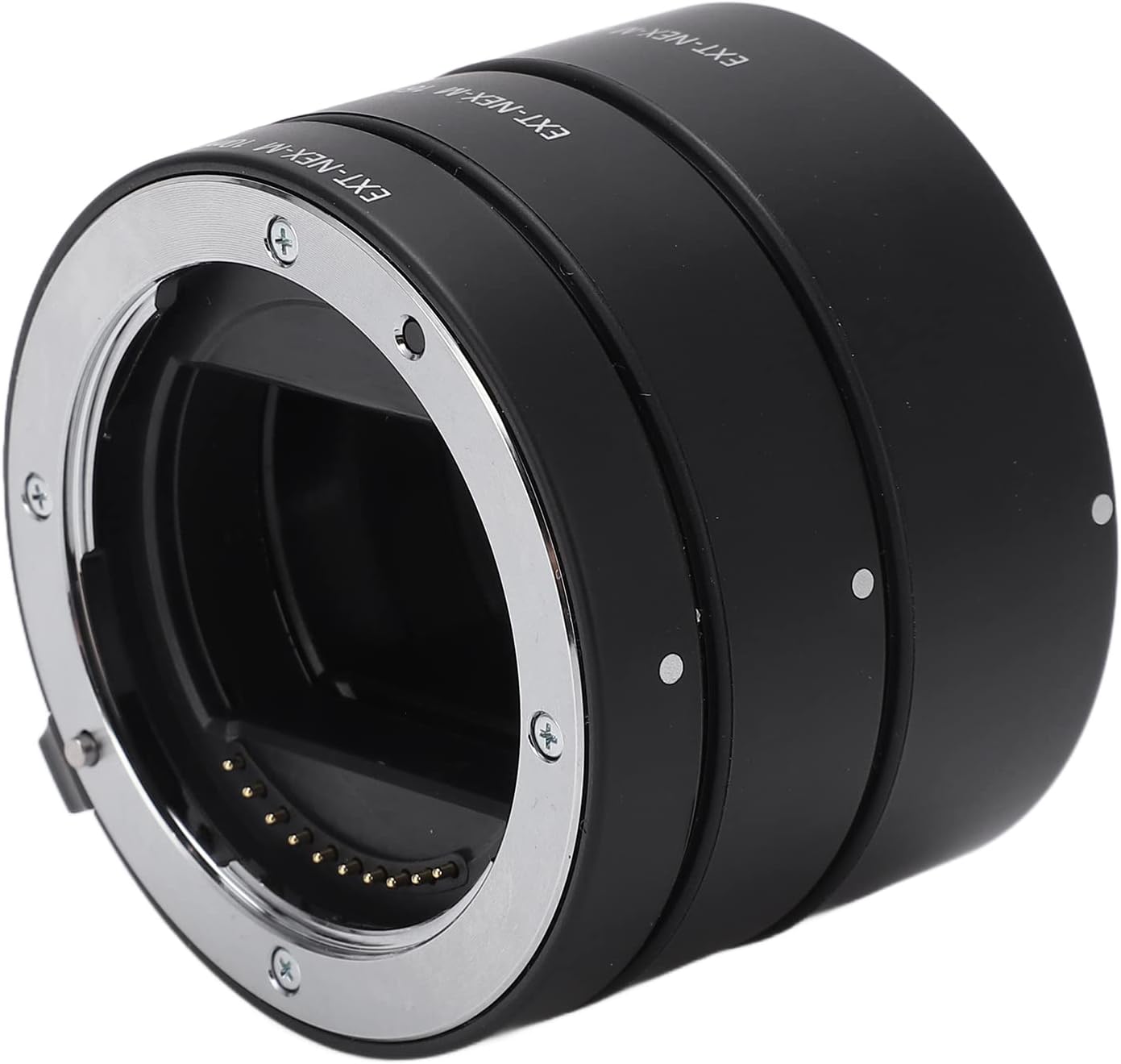 1. Easy to Install and Use: Easy to install and remove, the macro extension tube adapter ring is installed between the camera and the lens, with electronic contacts, it can be quickly locked, supports autofocus, and is simple to use. 2. Aluminum Alloy: The bayonet part is made of aluminum alloy metal material, it has fine workmanship, sturdiness and durability, and not easy to wear. 3. Multiple Methods of Use: The Macro extension tube set includes a 10mm, a 16mm and a 21mm single adapter ring. The three rings can be used alone or in combination. After being installed, the shortest focusing distance of the lens can be reduced to achieve a local macro effect. 4. Applicable : This extension tube is specially designed for E mount lenses, allowing you to shoot at closer distances with higher magnification. 5. Product Features: The macro extension tube is an effective accessory for macro photography, allowing you to easily take close up shots of small objects such as insects and flowers. Allows you to convert almost any lens into a micro lens at very little cost while maintaining its original optical quality. Specification: Item Type: Macro Extension Tube Set Material: Plastic + Aluminum Alloy Product Color: As Pictures Shown Product Weight: Approx. 124g / 4.4oz Applicable Lens: Suitable for E mount Lens Compatible Cameras: Suitable for E mount Cameras, such as for A7, A7R, A7S, A7II, A7RII, A7M2, A7SII, NEX-3, NEX-3N, NEX-3R, NEX-C3, NEX-F3K, NEX-5, NEX-5N, NEX-5A, NEX-5T, NEX-5C, NEX-5K, NEX-5R, A5000, A5100, A6000, A6300, A6400, A6500, A6600, A9, A7III, A7RIII, A7MIII packing list: 1 x Macro Extension Tube 1 x Manual Notice: 1. Please allow 1‑3mm error due to manual measurement. Thanks for your understanding. 2. Monitors are not calibrated same, item color displayed in photos may be showing slightly different from the real object. Please