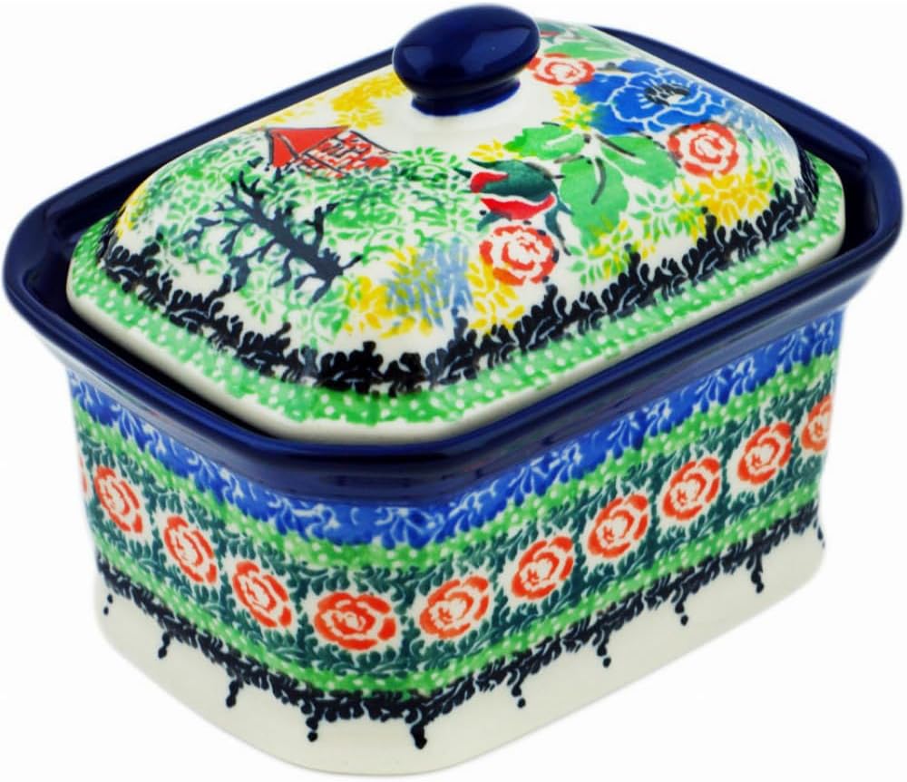 Genuine Polish Pottery handmade in Boleslawiec, Poland. Region celebrated for its long-standing ceramic tradition and artisanal craftsmanship.This authentic, hand-painted Polish stoneware Jar with Lid in the Cherries Jubilee pattern is handcrafted by Ceramika Artystyczna using traditional hand-painting and high-temperature firing techniques for lasting durability and everyday functionality.Certificate of Authenticity:Includes an official certificate verifying the handmade origin and authenticity of the piece.Care Instructions:Your order includes care instructions and helpful information, especially useful when gifting Polish Pottery.Dimensions:3.4" high, 3" wide, 4.5" long (max outside edge or handle).Capacity: 6 oz (filled to the rim).Certified Polmedia Polish Pottery Features:* Lead & Cadmium Free: Safe for everyday use.* Microwave Safe: Heat food or drinks with confidence.* Dishwasher Safe: Pattern will not fade.* Oven Safe (up to 480F): Excellent for baking and reheating.* Freezer Safe: High-fired stoneware handles temperature changes.* Chip & Scratch Resistant: Durable for daily use.* Hand-Painted Artistry: Decorated by skilled artisans.* Never-Fade Colors: Patterns remain vibrant forever.The Essence of Polish Pottery:For generations, artisans in Boleslawiec have crafted stoneware valued for durability, heat distribution, and long-lasting beauty. This tradition continues today in every piece of Polish Pottery.