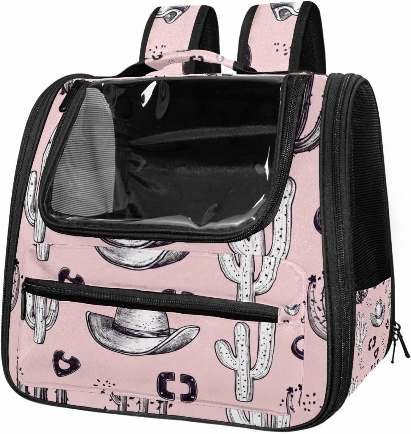 Well made: Cat Backpack Carrier is made from 900D oxford fabric, pp webbing, velvet, nylon, which is very sturdy, environmentally friendly and breathable. Not easily scratched by pet’s claws, pet backpack carrier is SAFETY & ANTI-SCRATCH. The back padding will give you a comfortable and breathable experience. Ventilated Backpack: With a breathable window in the front, this pet backpack allows cats to enjoy the sun without feeling stuffy. There are two side pockets and one big front pocket, and you can take foods or toy for your kitten pet. It is big enough for cat to turn around, and there are side pockets and hook holes, you will enjoy the greatest convenience when taking your cat out. Perfect size: Cat carrier is 15.75x9.84x13.78in/40x25x35cm. Fits most small/medium sized cat, dog, and pet. Quality fleece bed provide a comfortable place for your pet. Lightweight and easy to carry to all places. Built-in harnesses keep your naughty friends from escaping. Removable cosy mat for easier cleaning and let your pet enjoy it inside. Easy to carry: The adjustable shoulder strap of pet carrier bag help you hands-free carrying and makes it the most safe and convenient pet carrier bag for your travel. Seat belt design provide pets with safety protection throughout the trip. Pad protection keep your pets comfortable during travel. Unique Design: Innovative inside graphic design gives you a stereoscopic 3D visual experience. You also send us the photos you interest to make your unique dog or cat carrier. Pet bag is also a amazing gift for pet lover.