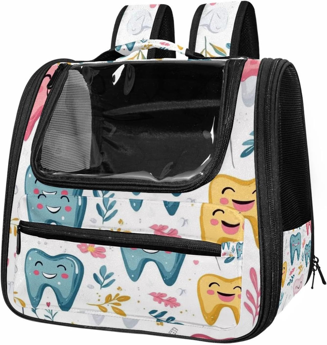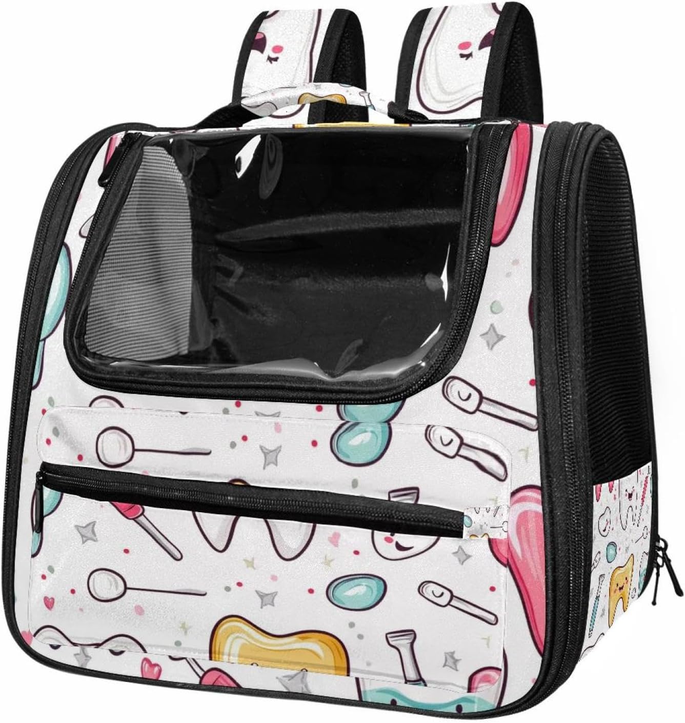 Well made: Cat Backpack Carrier is made from 900D oxford fabric, pp webbing, velvet, nylon, which is very sturdy, environmentally friendly and breathable. Not easily scratched by pet’s claws, pet backpack carrier is SAFETY & ANTI-SCRATCH. The back padding will give you a comfortable and breathable experience. Ventilated Backpack: With a breathable window in the front, this pet backpack allows cats to enjoy the sun without feeling stuffy. There are two side pockets and one big front pocket, and you can take foods or toy for your kitten pet. It is big enough for cat to turn around, and there are side pockets and hook holes, you will enjoy the greatest convenience when taking your cat out. Perfect size: Cat carrier is 15.75x9.84x13.78in/40x25x35cm. Fits most small/medium sized cat, dog, and pet. Quality fleece bed provide a comfortable place for your pet. Lightweight and easy to carry to all places. Built-in harnesses keep your naughty friends from escaping. Removable cosy mat for easier cleaning and let your pet enjoy it inside. Easy to carry: The adjustable shoulder strap of pet carrier bag help you hands-free carrying and makes it the most safe and convenient pet carrier bag for your travel. Seat belt design provide pets with safety protection throughout the trip. Pad protection keep your pets comfortable during travel. Unique Design: Innovative inside graphic design gives you a stereoscopic 3D visual experience. You also send us the photos you interest to make your unique dog or cat carrier. Pet bag is also a amazing gift for pet lover.