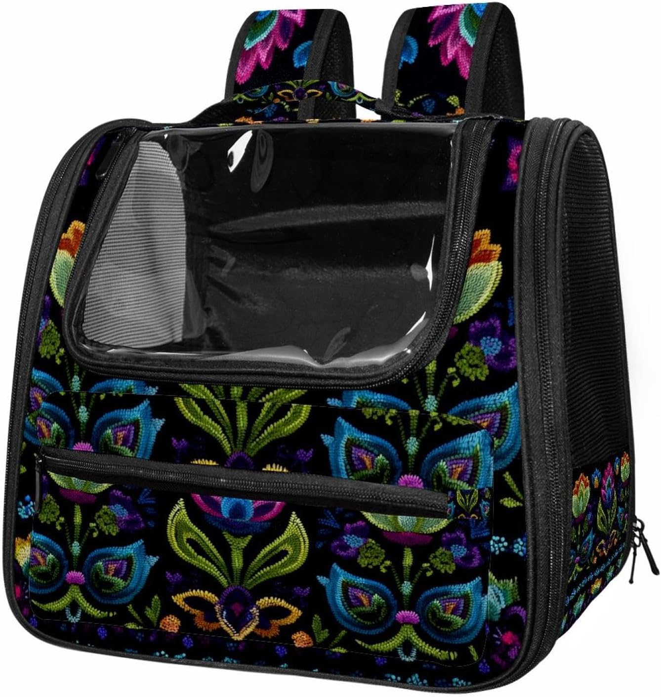 Well made: Cat Backpack Carrier is made from 900D oxford fabric, pp webbing, velvet, nylon, which is very sturdy, environmentally friendly and breathable. Not easily scratched by pet’s claws, pet backpack carrier is SAFETY & ANTI-SCRATCH. The back padding will give you a comfortable and breathable experience. Ventilated Backpack: With a breathable window in the front, this pet backpack allows cats to enjoy the sun without feeling stuffy. There are two side pockets and one big front pocket, and you can take foods or toy for your kitten pet. It is big enough for cat to turn around, and there are side pockets and hook holes, you will enjoy the greatest convenience when taking your cat out. Perfect size: Cat carrier is 15.75x9.84x13.78in/40x25x35cm. Fits most small/medium sized cat, dog, and pet. Quality fleece bed provide a comfortable place for your pet. Lightweight and easy to carry to all places. Built-in harnesses keep your naughty friends from escaping. Removable cosy mat for easier cleaning and let your pet enjoy it inside. Easy to carry: The adjustable shoulder strap of pet carrier bag help you hands-free carrying and makes it the most safe and convenient pet carrier bag for your travel. Seat belt design provide pets with safety protection throughout the trip. Pad protection keep your pets comfortable during travel. Unique Design: Innovative inside graphic design gives you a stereoscopic 3D visual experience. You also send us the photos you interest to make your unique dog or cat carrier. Pet bag is also a amazing gift for pet lover.