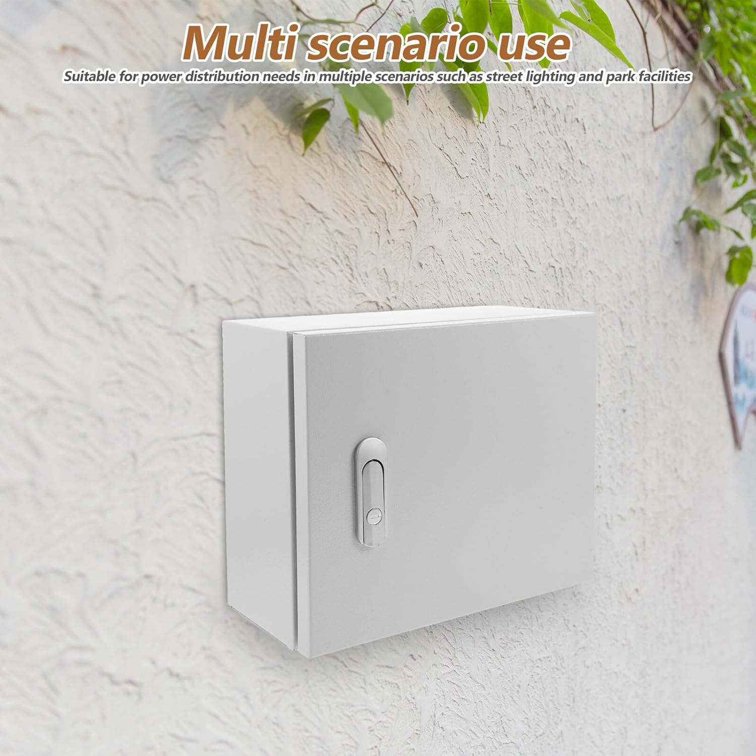Package Include 1 x outdoor distribution box with keys Features -Easy installation: junction box features a quick installation design that simplifies installation, saving time and effort during construction or maintenance projects weatherproof outdoor cabinets -Color:White -Product Info: Outdoor power distribution box -stable weather resistant material: outdoor junction box built with stable materials, it withstands weather conditions, ensuring performance -Waterproof design: junction box, engineered with a robust waterproof structure, this enclosure ensures reliable protection for electrical equipment in harsh outdoor environments electrical junction boxes -Size:30.00X25.00X14.00cm/11.79X9.82X5.50in -Wall mounted convenience: electrical enclosure box is designed for wall mounted applications, it allows for easy access and maintenance, making it ideal for routine inspections electrical boxes -Material:Iron -Versatile applications: electrical enclosure box, for various outdoor scenarios, including street lighting, park facilities, and other power distribution needs outdoor electrical enclosureGoods Descriptionweather proof electrical boxes Its stable construction ensures protection against harsh environmental conditions, making it ideal for outdoor installations.weatherproof outdoor cabinets This outdoor wall-mounted electrical enclosure is designed to provide a secure and weatherproof way for housing electrical components.outdoor receptacle enclosure The sleek and functional design allows for easy integration into various settings