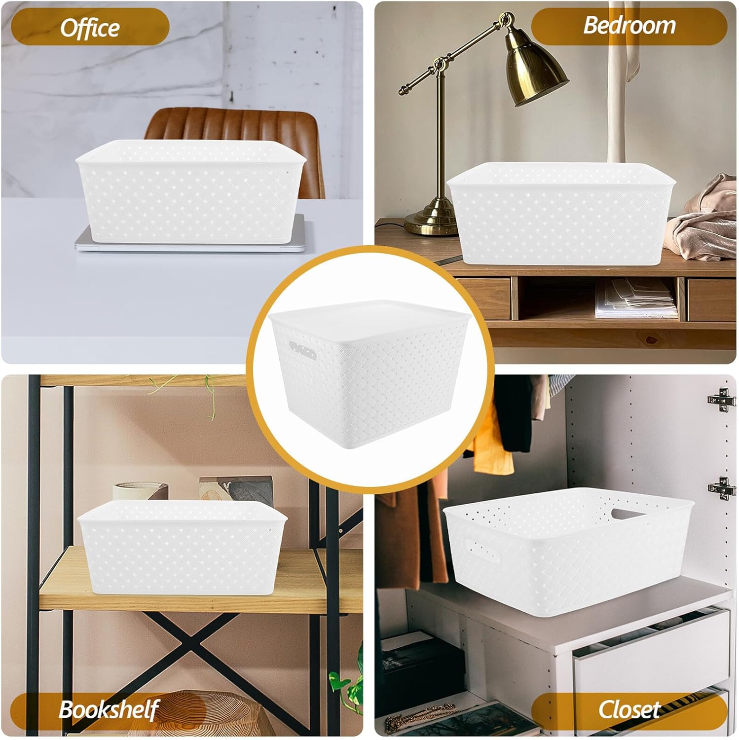 Package Include 1 x plastic basket Features -Material:Plastic -Size:36.00X29.80X1.10cm/14.15X11.71X0.43in -Product Info:Storage basket with cover -Color:White -Size:35.70X29.50X21.90cm/14.03X11.59X8.61in -Versatile in its application, this storage basket is ideal for holding clothes, , books, and other household items, helping to keep your living space neat and orderly locker bins. -The thoughtfully designed handles make this storage basket easy to carry and maneuver, adding a layer of convenience to its use white bin. -Constructed from plastic woven materials, this storage box is built to last, maintaining its shape and durability over time. -Featuring a sleek white design, this storage basket not only serves a practical purpose but also complements a wide range of home decor styles small plastic basket with handle. -This storage box offers ample space to accommodate a variety of items, making it an excellent solution for organizing and decluttering your home storage baskets by size.Goods Descriptiondecorative storage baskets The spacious interior accommodates a wide range of items, making it ideal for decluttering any space.stackable storage bins Transform your home storage with our versatile storage bin.wicker baskets for storage With its elegant white design, this storage basket complements any home decor.decorated storage baskets The lid ensures your belongings stay protected, while the woven material offers performance