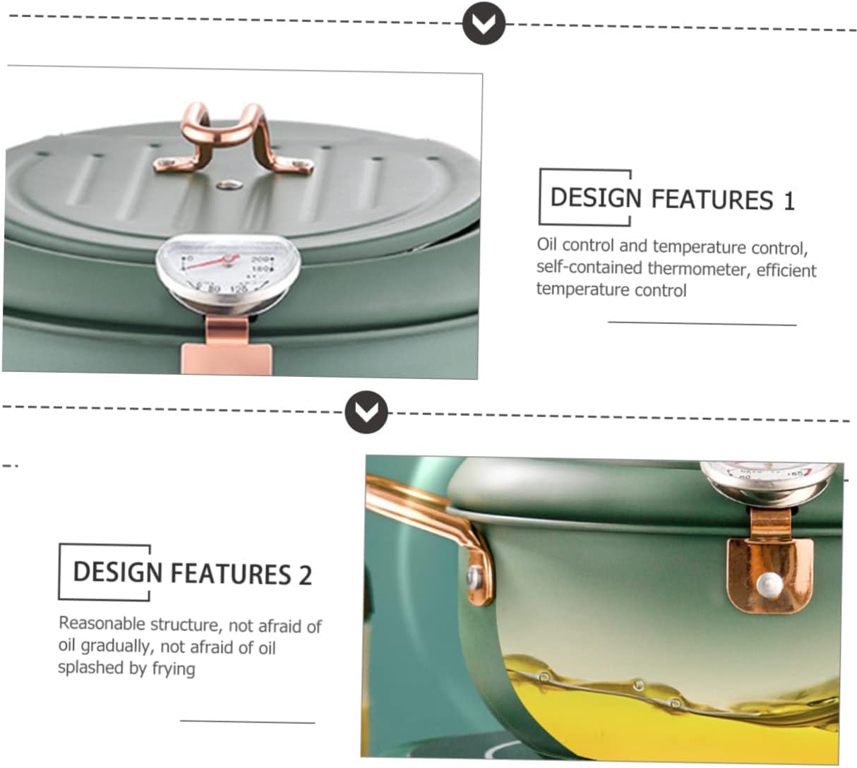Package List 1 x fryer Features -Size: About 30.00X20.00X11.00cm/11.79X7.86X4.32inch Portable Frying Pan. -Material: Stainless Steel Deep Frying Pot. -Product Info:Fryer -Color: Green Tempura Deep Fryer. -This is a beautiful and efficient fryer that will be a great gift option for your friends who love to cook Stainless Steel Frying Pot. -The appearance is simple, fresh and comfortable, and can be well placed in your kitchen. Beautiful and practical kitchen utensils can make your cooking work more comfortable Controllable Temperature Fryer. -Efficient and convenient, it can help you make fried food quickly and bring convenience to your life Fry Pan with Thermometer. -It is easy to use and easy to clean, which brings great convenience to your life Nonstick Fryer. -Reasonable design, safe and , higher efficiency while protecting your safety Tempura Frying Pot.Goods InformationControllable Temperature Fryer The deep fryer design not only prevents burns, but also has the right volume to meet your daily needs and will be your perfect kitchen frying tool.Deep Fryer Pan This product is a small household kitchen appliance for frying food, it is made of safe and stainless steel, which is and retains heat well