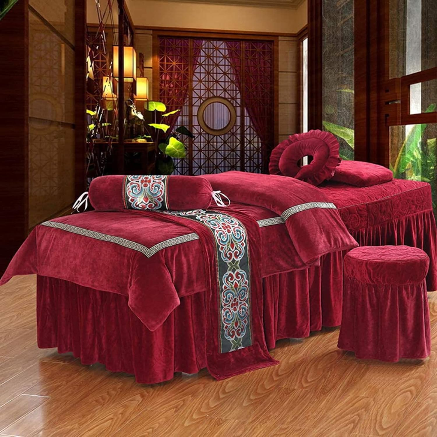 Renew Your Massage Table With This Massage Table Skirt Set. Bring A Professional And Luxury Look To Your customer. This Massage Table Skirt Set.Is A Perfect Combination Of Functionality And good-looking. The Linens Can Be Applicable To Beauty Salon Tattoos Spa Acupuncture Chiropractic treatments.By Default There Is A Hole For Face Rest On The Table Sheet. We Can Customize For You Without That Face Rest Hole.4 Pieces Set ( The Skirt Table Sheet, Blanket Cover, Pillowcase And Chair Cover) Provide All Possibilities For Your usage.Pattern:Solid ColorDue to manual measurement, the error is usually between 1-3 cm.Please understand, due to some factors, such as the different monitors and the different light circumstances, the colours of the real items could be a little different to the items in the pictures.If you have any suggestions, please contact us, reliable and friendly customer service will be replied within 24 hours.