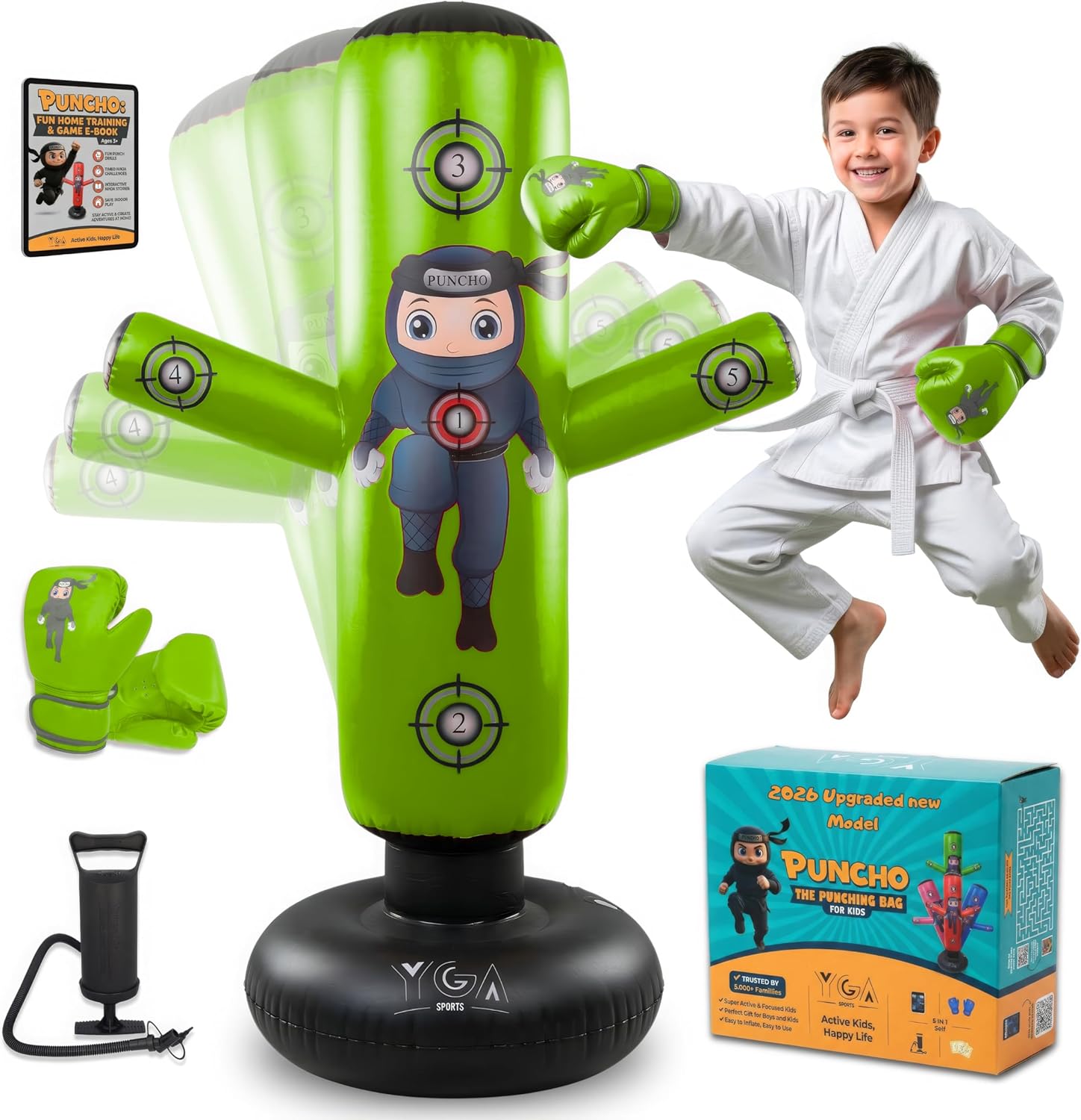 | Included Components | Punching bag for kids, Boxing Gloves for Kids, Quick Hand Air Pump, PUNCHO's eBook, Manual User, and 3 Repair Stickers |