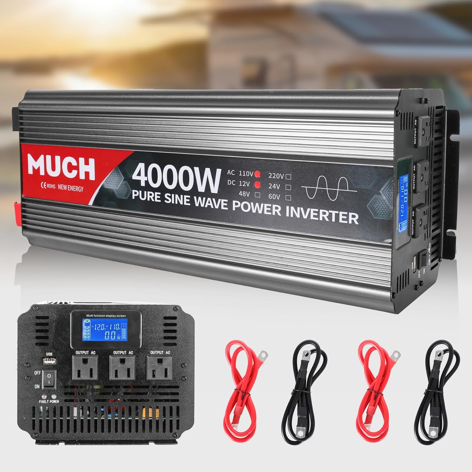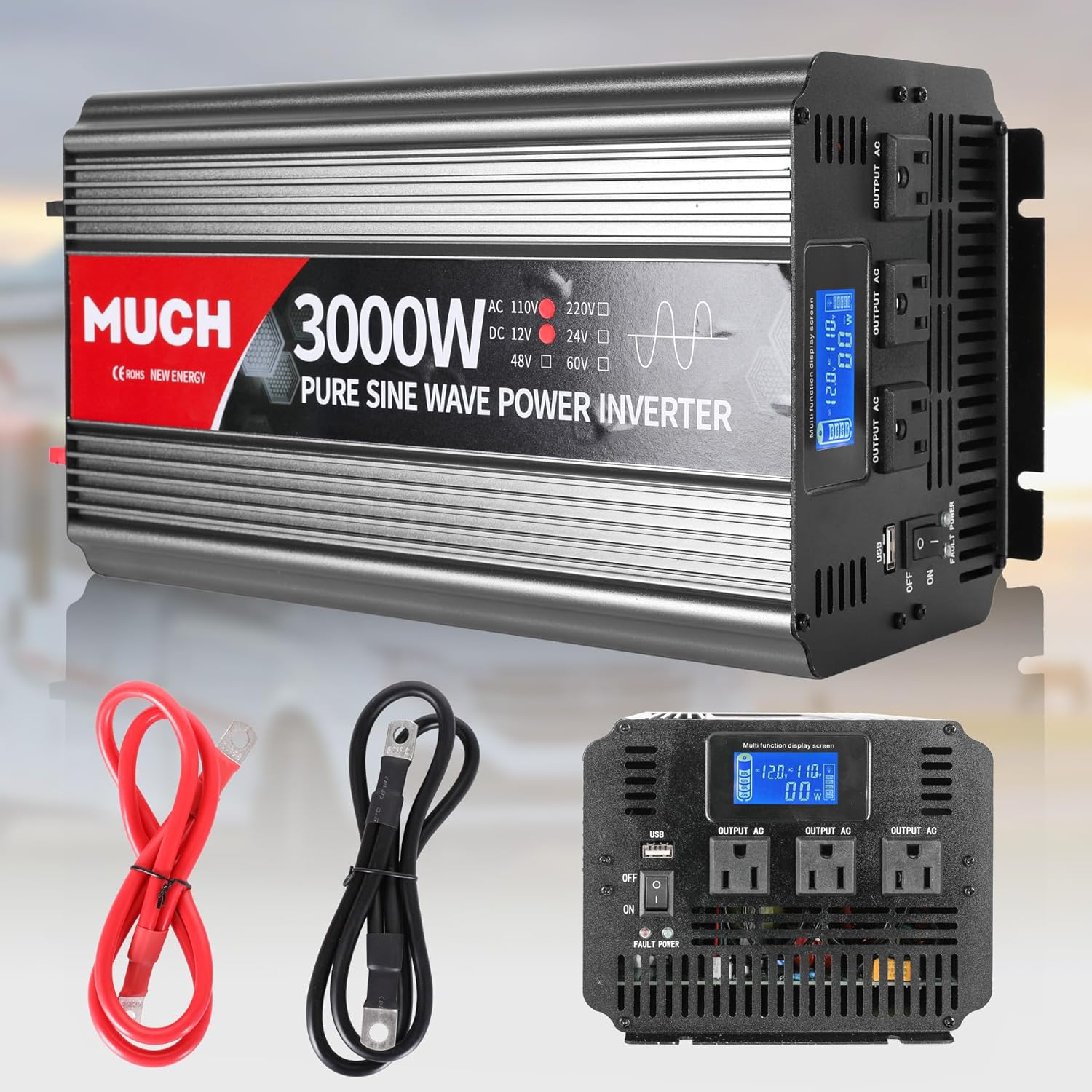 This pure sine wave power inverter converts 24V DC to 110V/120V AC with ultra-low harmonic distortion (<3%), ensuring stable performance for precision equipment. The aerospace-grade aluminum shell dissipates heat efficiently, while the LCD color screen provides instant status updates on input/output voltage and fault alerts. With dual protection layers (low-voltage shutdown at 10V±2V and over-temperature cutoff at 55-77℃), it safeguards both your devices and vehicle battery. The package includes a 20-inch battery cable with alligator clips for direct battery connection and a cigarette lighter adapter for portable use. Ideal for road trips, camping, or home backup power solutions.
