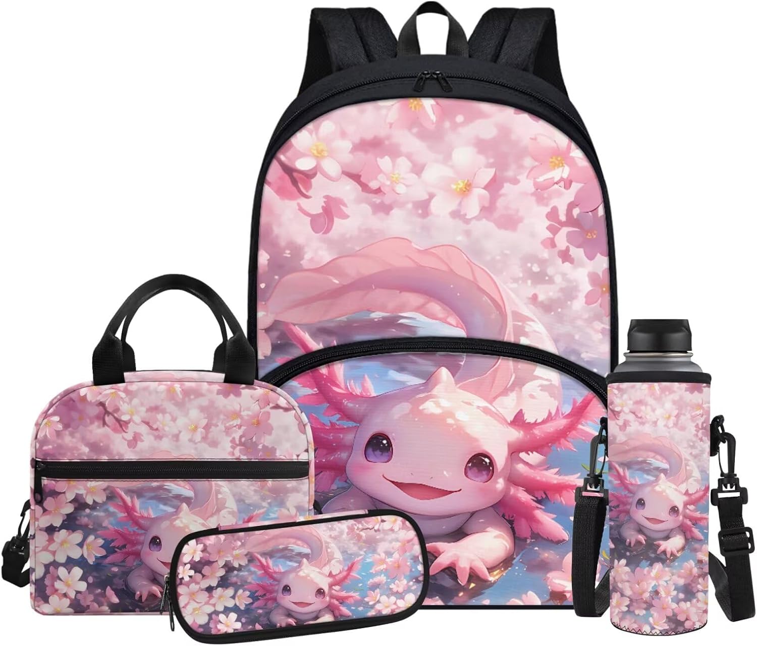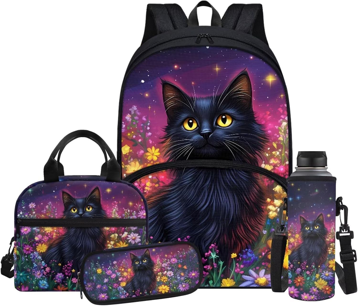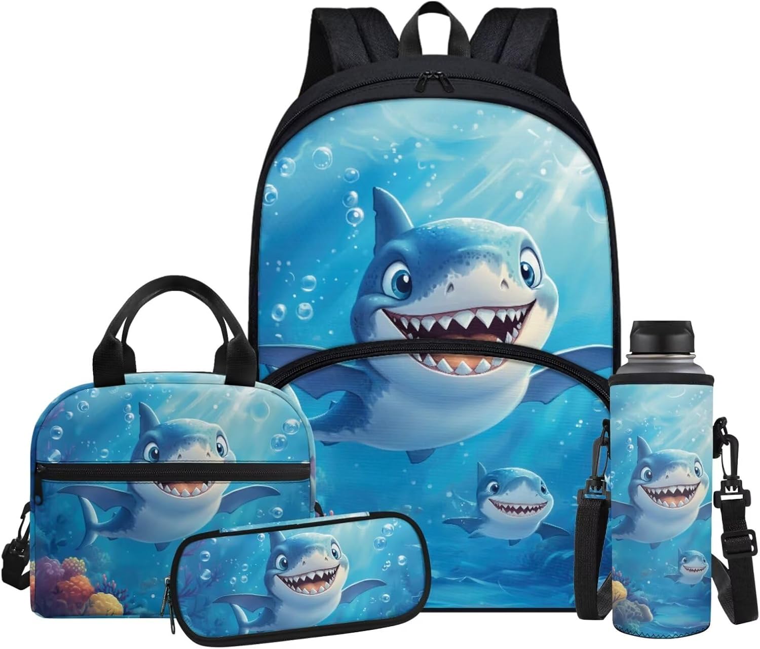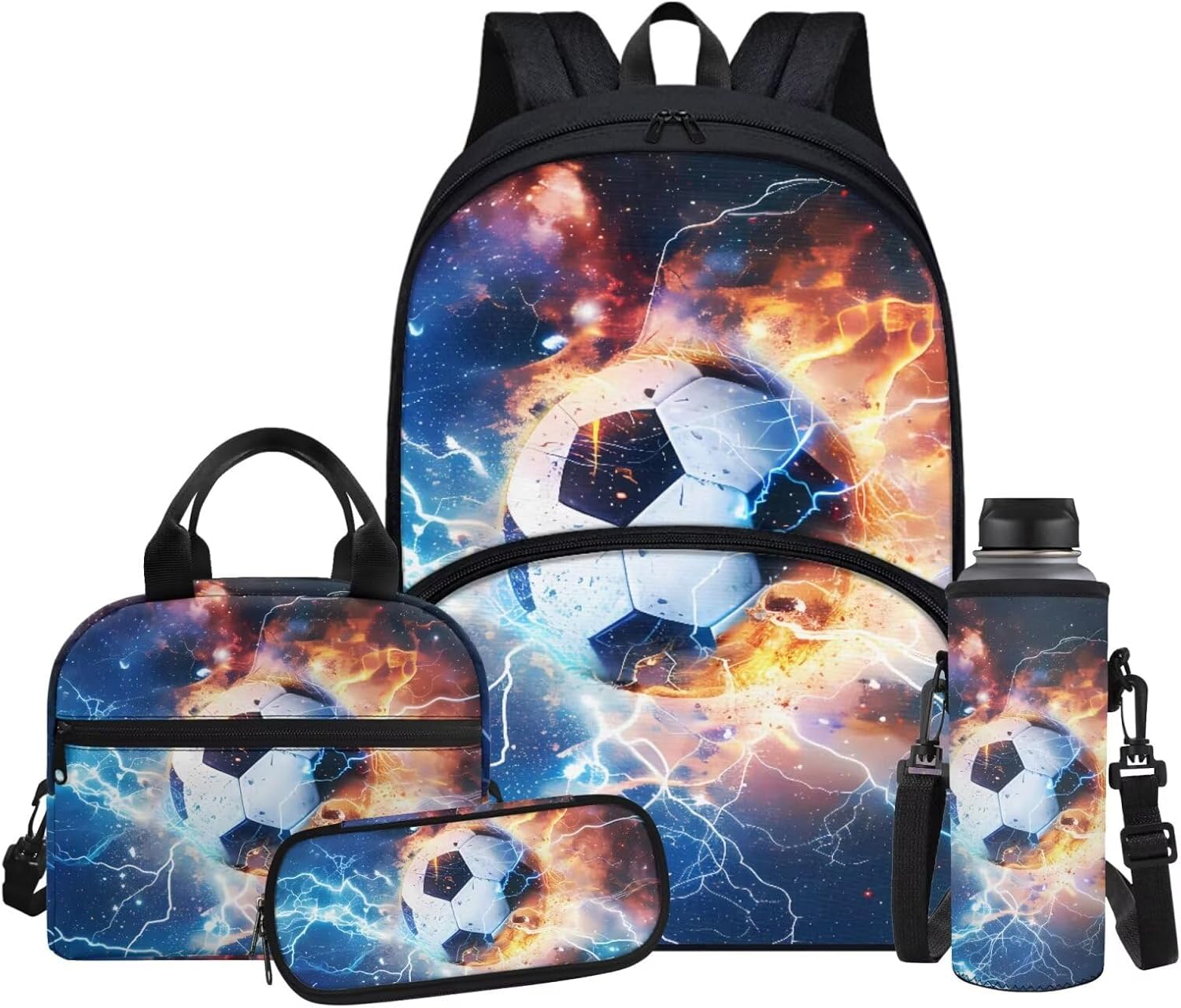 Fabrics: The kids bookbag, pencil case and water bottle sleeve are made of high quality polyester with zipper closure, lightweight and easy to carry; the lunch box is made of aluminum film material, heat preservation and dirt resistance, peace of mind and comfort to use. Adjustable Shoulder Strap: The cute backpack for school aesthetic is made of breathable and comfortable material, which effectively reduces the pressure on shoulders and back. The lunch bag and water bottle bag are also equipped with adjustable shoulder straps and support the hand-carrying function to meet a variety of use scenarios. Size: Backpack-11.8''' x 6.3'' x 16.9''; Lunch bag-9.1'' x 5.1'' x 8.2''; Water bottle sleeve-3.74'' x 10.24''; Pen bag-8.8'' x 1.7'' x 4.1''; Perfect for boys and girls for school and traveling. Multi-functional Backpack Set: This bookbag set is lightweight and portable for school, kindergarten, elementary school, middle school, high school, college, work, weekends, field trips, and travel. It is suitable for kindergarten. It is the perfect back to school book bag gift for your daily needs. Ideal Gift: The 4-piece backpack set comes in a variety of patterns with vivid creativity, including dinosaurs, Milky Way, American flag, horse, panda, wolf, shark, tiger, ball, astronauts, cats, dogs and so on. The unique book bag is the perfect gift for family, friends, kids, students on birthdays, Children's Day, Easter, Christmas, Halloween, Independence Day or back to school.