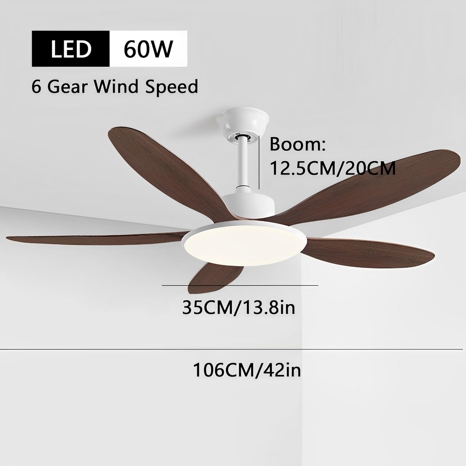 Brand: IBalodyStyle: ModernColor: White+Wood Color,Green+Wood Color,White+Brown,Black+Brown (reference image)Shape: Round (Reference image)Material: Metal,ABS fan blades,Acrylic lampshadeSize:Diameter: 106CM / 42inBoom: 12.5CM / 25CMDiameter: 132CM / 52inBoom: 12.5CM / 25CMPower: LED light 60WWind speed: 6 gearFan blade: 5 piecesUse space: 8-15㎡The package includes:1 x Ceiling fan light1 x Accessories package1 x Remote controlScene: Remote ceiling fan with light for bedroom, living room, dinning room,kitchen, bunk bed, loft low ceiling rooms.Input Voltage: (We will prepare the lighting voltage according to the voltage of buyers' countries)Tips: The fan is easy to remove and, clean, when you do the cleaning, cut off the power, please.If you have any question ,please kindly contact us firstly,we are always here service for you.