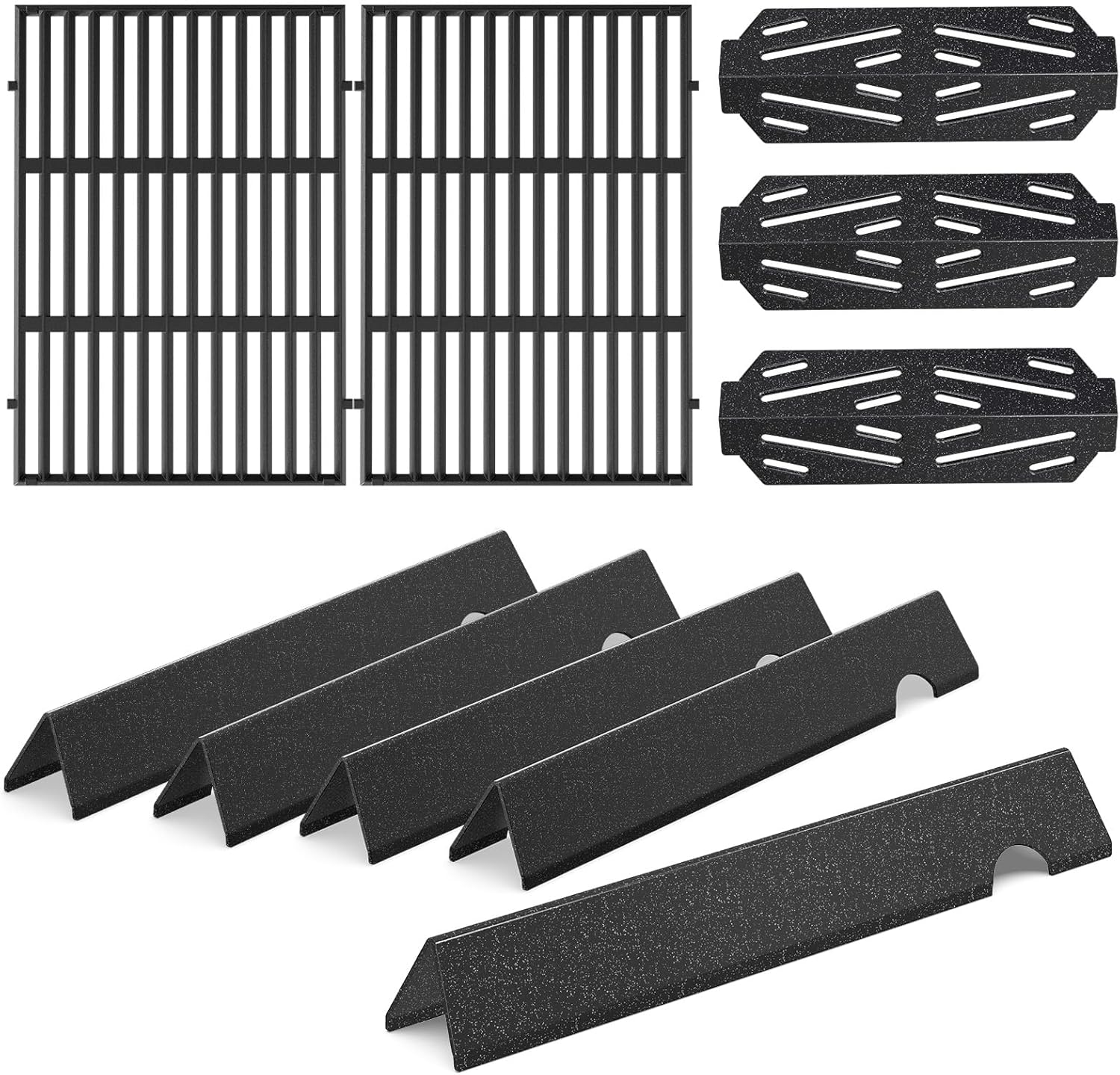 • šŸ”„ć€DIMENSIONS & PACKAGE怑Each porcelain steel flavorizer bar: 15.3" x2.6" x2.5"; Each grate measures: 17.5" x 11.9".怐Package 怑5 porcelain steel flavorizer bars+2 cast iron grill grates. Kindly compare with the SIZE and MODEL of your original parts before ordering