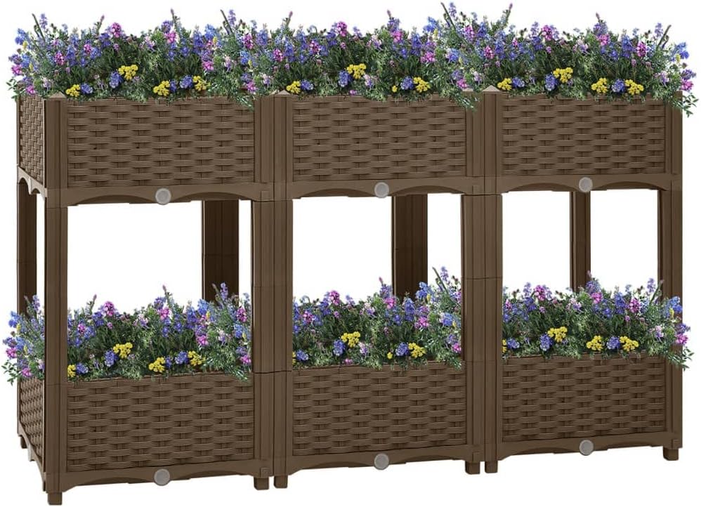 This raised bed would be an excellent choice for DIY enthusiasts to decorate their gardens, balconies or patios.This planter is made of polypropylene, making it sturdy, hard-wearing and suitable for daily outdoor use. The garden pot is deep and wide enough to hold a large amount of soil and provides ample space for your plants, vegetables, herbs and flowers. Create a lovely backdrop for your plants with this elegant planting bed!Color: BrownMaterial: PP (polypropylene)Dimensions: 47.2" x 15.7" x 9.1" (L x W x H)Assembly required: Yes