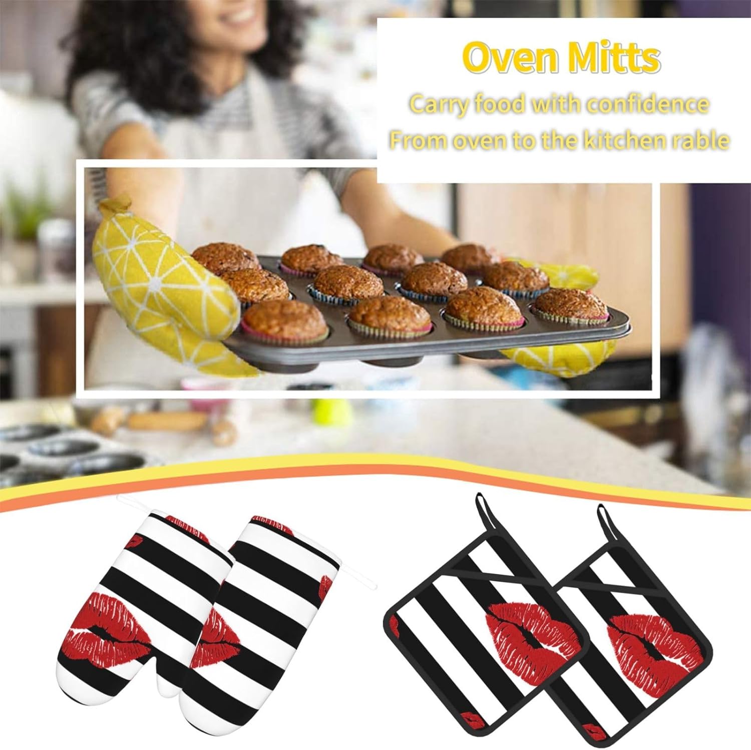 Upgrade your kitchen essentials with this oven mitts and pot holders set, designed for safe and comfortable handling of hot cookware. The set includes 2 heat-resistant oven mitts and 2 pot holders with pockets, making it a practical choice for daily cooking, baking, grilling, and microwave use.Crafted from high-quality polyester with thick insulated padding, these kitchen gloves deliver reliable heat protection up to 260°C. The soft quilted lining ensures comfort and flexibility, while the silicone palm design enhances grip and control when handling hot pots, pans, and trays.The non-slip silicone surface provides added stability, giving you confidence when moving hot cookware. Waterproof inner and outer layers make cleaning simple—just wipe clean or hand wash and air dry for easy care.Each piece features a convenient hanging loop for organized storage and quick access in your kitchen. Stylish and functional, this oven mitts set also makes a thoughtful gift for family and friends on holidays, housewarmings, and special occasions.