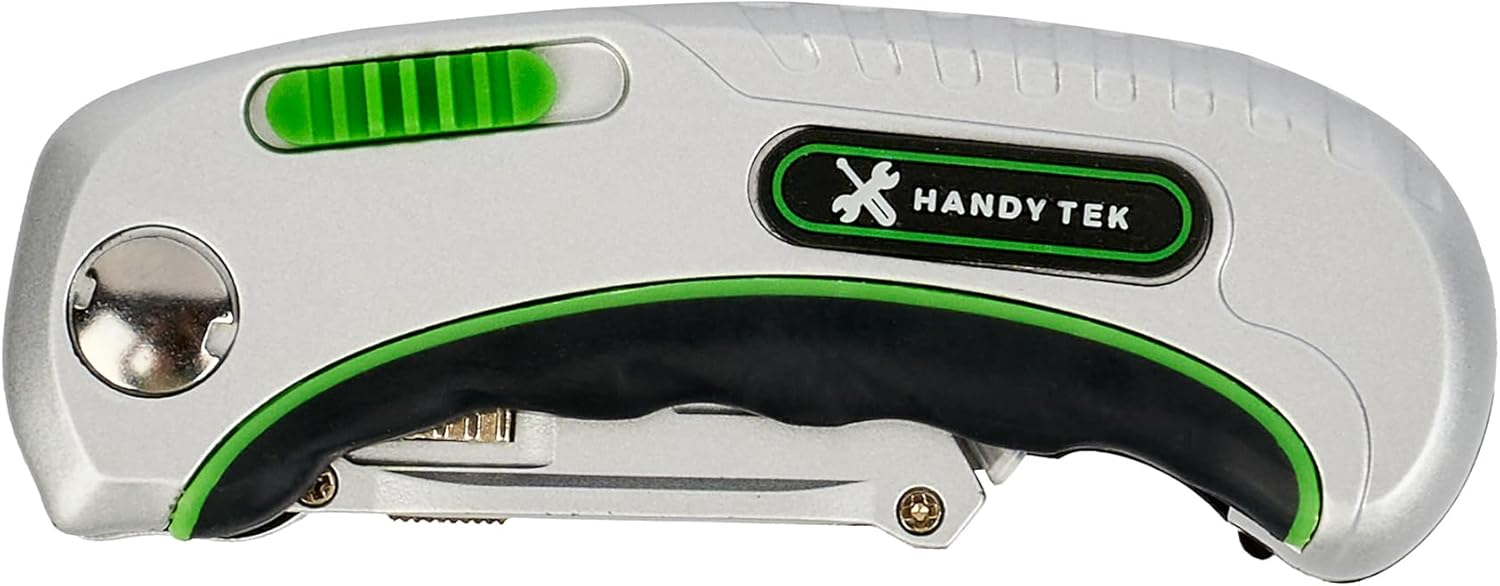 Equip your kitchen staff with our Handy Tek Silver Folding Utility Knives. These cutting knives feature a quick change mechanism that allows for rapid and effortless replacement of blades, ensuring minimal downtime. With a lock-back feature, these sharp knives are securely in place to minimize accidents during use. These premium utility knives feature a hardened zinc housing and handle, making them heavy-duty and ideal for withstanding demanding environments. The folding design of these heavy-duty knives makes them easy to carry and ensures effortless storage. Crafted with high-carbon steel blades, these box cutters offer superior sharpness and edge retention for long-lasting performance. With an over-molding grip made from PC and TPR, these folding utility knives create a no-slip grip and reduce hand fatigue during prolonged use. These folding knives have a blade storage cartridge, providing a practical solution for securely storing extra blades. Measuring 6.5 inches in length, these utility knives have a 19-millimeter wide blade and are perfectly sized for any cutting task. Sold in 6 boxes with 6 knives and 18 blades.