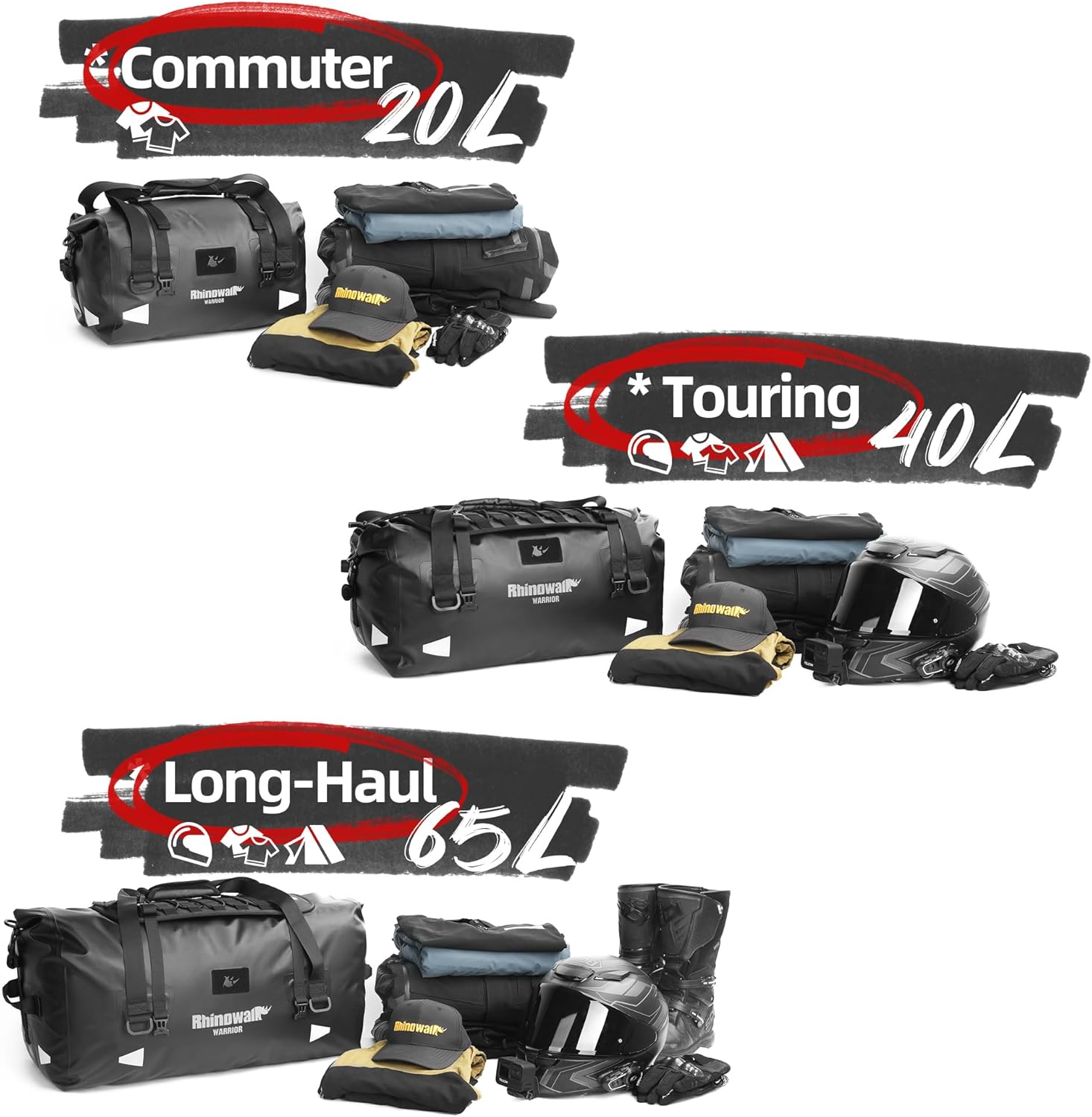 Rhinowalk Motorcycle Tail Bag 65L Waterproof Duffle Dry Bag Motorcycle Travel Luggage with Large Storage Space for Camping, Boating, Bycycle, Motorbike-Black