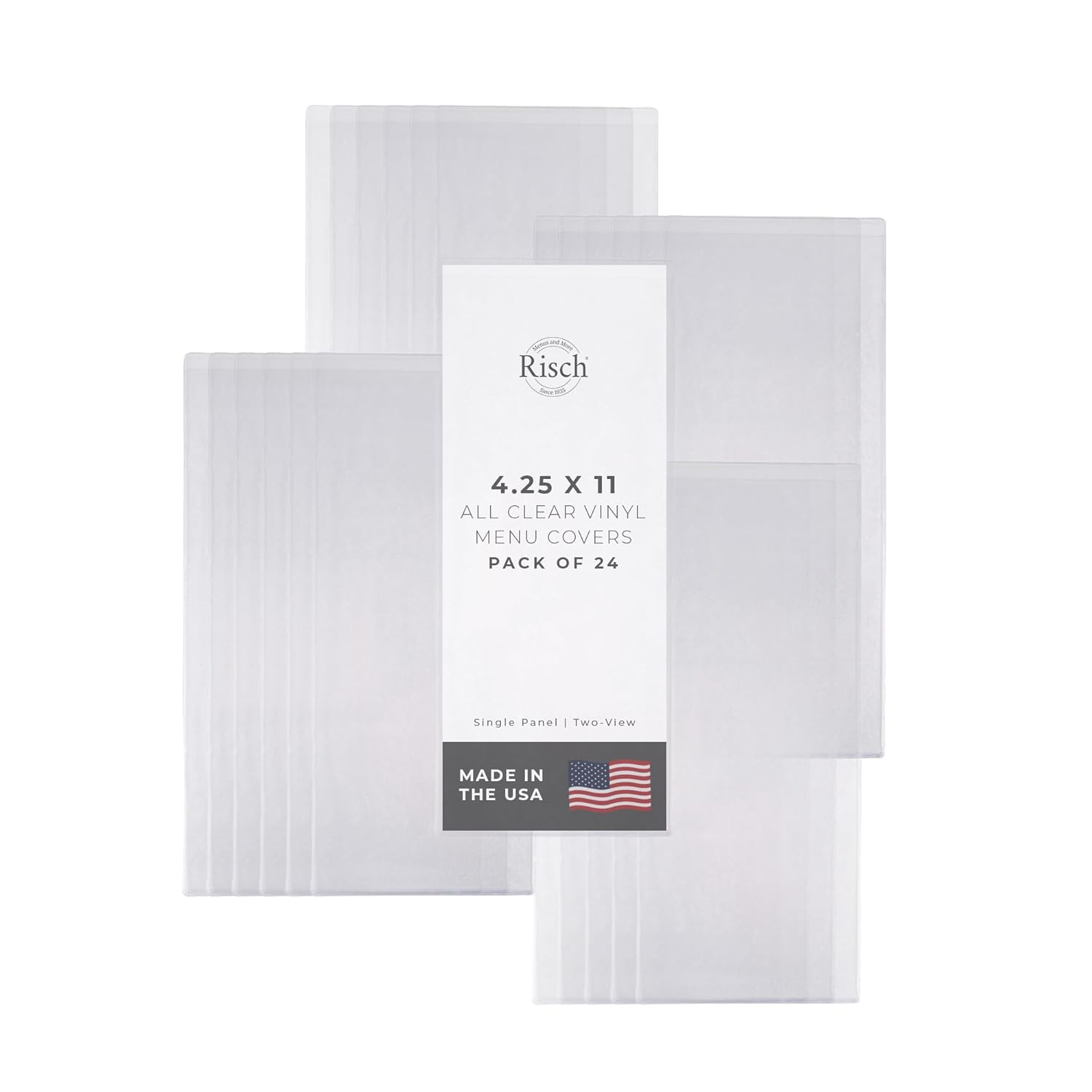Our American-made all-clear heat-sealed vinyl menu covers are perfect for showcasing your daily specials, wine lists, beer selections, dessert menus, and so much more. The 8-gauge or 12-gauge all-clear vinyl provides excellent visibility of your food and drink selections without the hassle of dealing with album-style corner tabs or binding. The top loading (single panel pocket only) or side-loading feature allows you to remove and swap out your menus with ease, and its slim design lets you stack and store them efficiently without taking up too much space. Don't waste your money on laminated or disposable menus when you can buy menu covers that are long-lasting and affordable. Unlike most hardcover menus, these covers are meant to be flexible and lightweight. If you’re looking to make your menu holders more durable, we recommend printing your single or double-sided menus on #80 or #100 cardstock paper or inserting chipboard between your paper inserts. These vinyl menu sleeves are also easy to clean. Simply wipe them down with a damp towel and dish soap and you’re good to go!