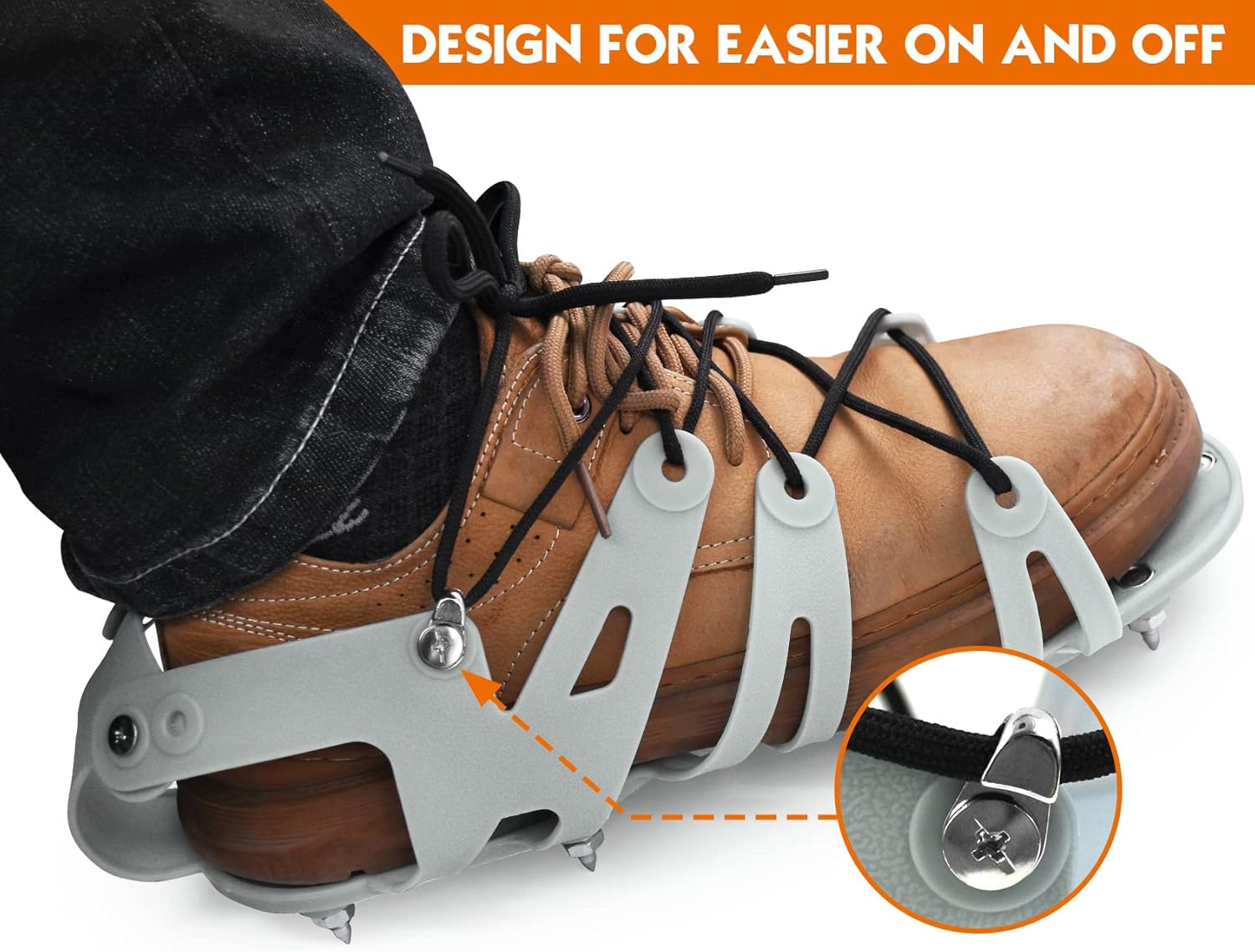 Professional large size paint roller set with ROLLINGDOG’s 12-18” adjustable paint roller frame, 3pcs of Super-Micro microfiber roller covers, and sturdy paint tray. Covers are durably made with process known as thermo-bonding where the fabric is attached to the melted plastic core allowing for use with both water based and solvent based applications. The lint free shedless microfiber can be used and washed repeatedly. Spiked shoes will allow you to walk around on fresh epoxy floor coatings without damaging your shoes, while also removing air bubbles from epoxy to improve the coating. Quickly and easily tighten on all the screws, put laces in and then slide your shoe in and tie around.