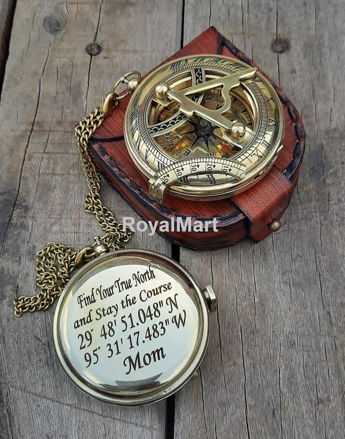 Top side Boy Scout. The compass is made of brass metal and it measures about 3" in diameter. PERSONALIZATION: We can fit around 180-190 characters per side. Personalization for one side of the compass is complimentary, and personalization. INSTRUCTIONS FOR ORDERING: 1. Review different font options in the second image included in this listing. 2. Using a drop-down menu, select the preferred font. 3. Using the other drop-down menu, select the number of sides you would like to personalize. 4. Add the item to your cart. 5. In the 'notes to seller' specify the text you wish to be engraved on each side of the compass. Compass Size: 3 x 2.5 x 0.8 inches. Made with high quality brass and fitted with hands.Only back side engraved.