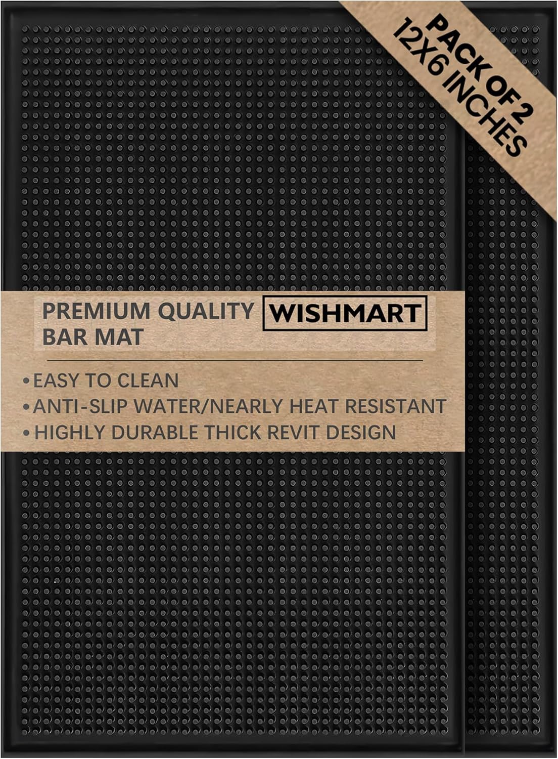 • [ DURABLE RUBBER MAT ] - They are made of sturdy and long-lasting rubber so they won't break down like normal bar rubber mats do. They wash up easily with a sponge or cloth and will be ready to catch more spills.