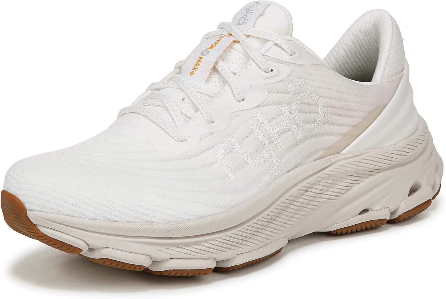 Get cushioning and shock absorption to the max in this amped-up version of our best-selling Devotion X womens walking sneaker. BEST FOR: High-performance fitness walking. PERFORMANCE TESTED: Proven in lab testing to provide low deceleration, braking, and impact forces + Very high perceived cushioning. INNOVATIVE TECH: Full-length RE-ZORB responsive cushioning for shock absorption + impact protection, plus lightweight RE-ZORB LITE pads in the forefoot and heel. MATERIALS: Breathable air mesh + Padded tongue and heel collar + Durable molded heel overlay. CLOSURE: Secure lace-up front. INSOLE: Anatomical heel with extra arch support + heel support and partially recycled EVA. MIDSOLE: Lightweight EVA for soft cushioning + Full-length RE-ZORB responsive cushioning. OUTSOLE: Durable two-piece rubber sole for grip + Built-in compression channels for shock absorption. CARE INSTRUCTIONS: Product works best by cleaning immediately after a spill by running cold water over the shoe. Use only cold water to remove the following stains: dirt, mud, coffee, ketchup, blood. Do not wipe the shoe with any product, including water, as it can cause the stain to be absorbed into the material. Results may vary and Ryka does not guarantee that this product will work to remove any and all stains, particularly after repeated use. WEIGHT: 244 g/8.6 oz per shoe. HEEL-TO-TOE DROP: 10 mm.