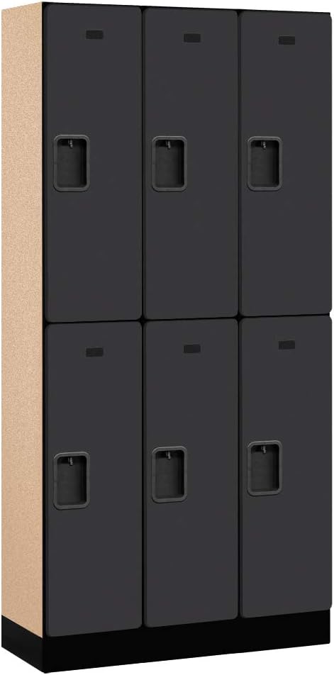 Salsbury 30000 Series Designer Wood Lockers are ideal for settings where a professional environment is desired. Designer lockers are 12 inch wide, are available in Single Tier, Double Tier, Triple Tier, Box and Double Tier 'S' Style configurations and in 6 high pressure laminate finishes (Gray, blue, black, maple, cherry or mahogany). Designer lockers are available in heights of five (5) feet and six (6) feet and include a 4 inch black base (add 4 inch for the base) and in depths of 15 inch, 18 inch or 21 inch. Optional matching laminated sloping hoods and side panels easily attach to designer lockers and provide a finished look to an individual locker or a row of lockers. All locker doors are 12 inch x 3/4 inch deep and include a black name / number plate. All locker doors also include heavy duty concealed hinges and a lift up handle an recessed hasp for added security. Built-in locks (#33310 for combination and #33315 for key), padlocks (#33320 for combination and #33325 for key), electronic locks (#33390) and resettable combination locks (#33395) are available upon request. One wide lockers are available as fully assembled units only. Three (3) wide lockers are also available as fully assembled units only and required minor assembly.