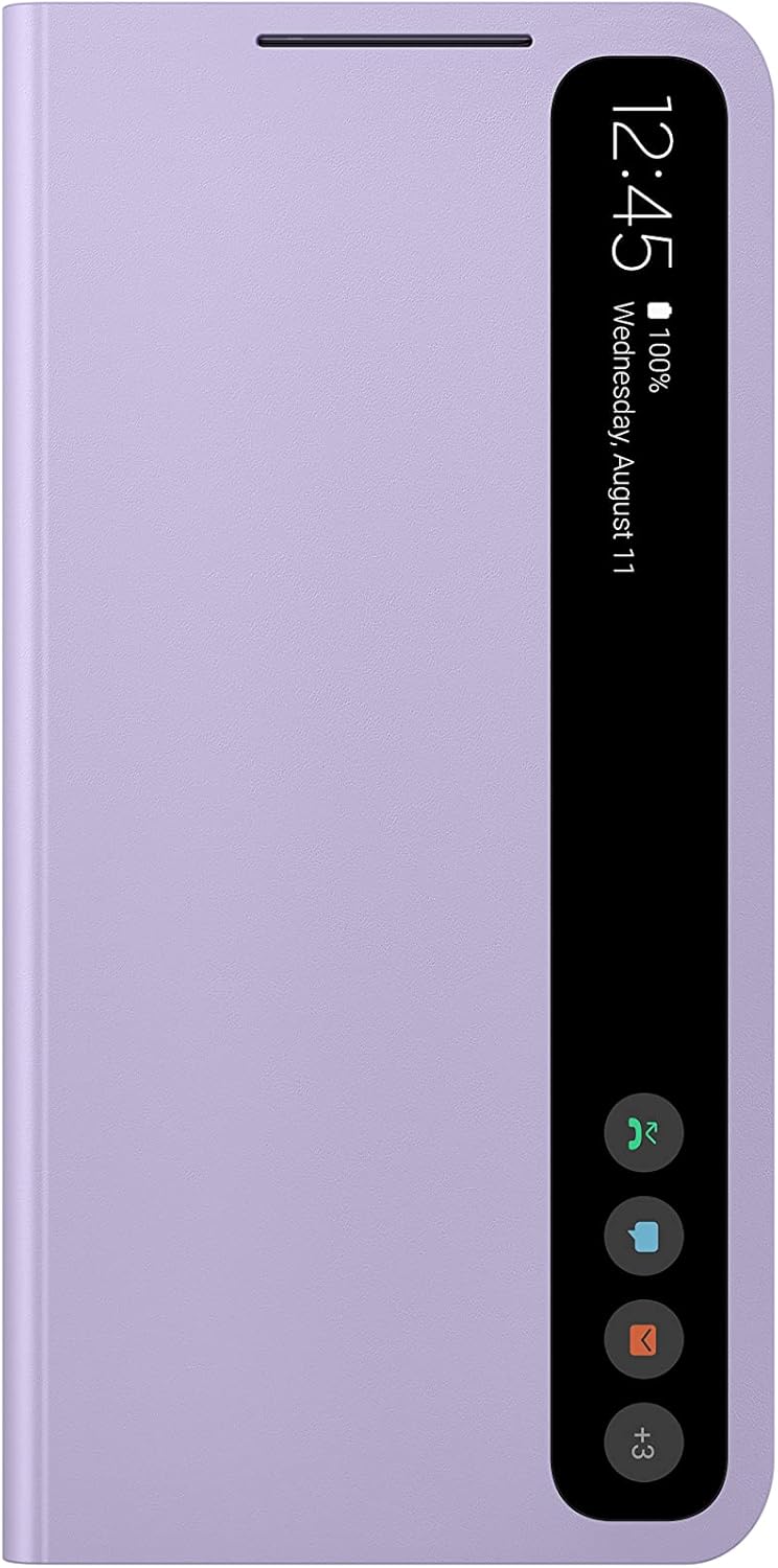 SAMSUNG Galaxy S21 FE 5G S View Cover offers smart clear view touch control and a sustainable design made from recycled materials. Easily take control of your phone with the S View Cover’s convenient interface. Pause your music, answer calls and turn off alarms, all without stopping to open the cover. Made with recycled¹ materials, the S View Cover gives new life to consumer waste while conserving resources and reducing carbon emissions. Remove the cover for optimal Wireless Power Share results. CAUTION: To avoid electric shock and damaging your device, do not charge it while it is wet or near liquids; Do not handle device, charger or cords with wet hands. The outside of Galaxy S21 FE 5G S View Cover meets the requirements of antimicrobial activity as set by the FITI Testing & Research Institute. To perform its antimicrobial function, this product has been treated with the biocidal substance Zinc Pyrithione. Antimicrobial property does not completely protect users against bacteria and provides no protection against viruses including Covid-19. Antimicrobial effect may vary depending on conditions of use. Antimicrobial coating on case exterior only. The phone's exterior is not antimicrobial. ¹The interior plastic of the S View Cover for Galaxy S21 FE 5G was created using recycled materials from Lotte Chemical Corporation and has been validated by the UL.