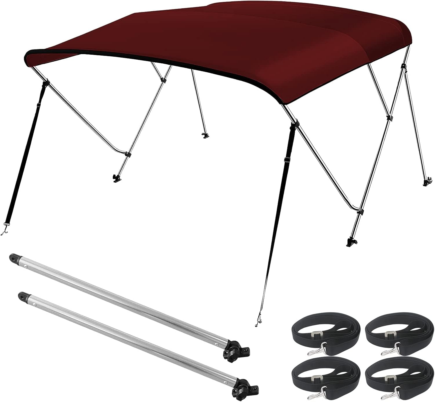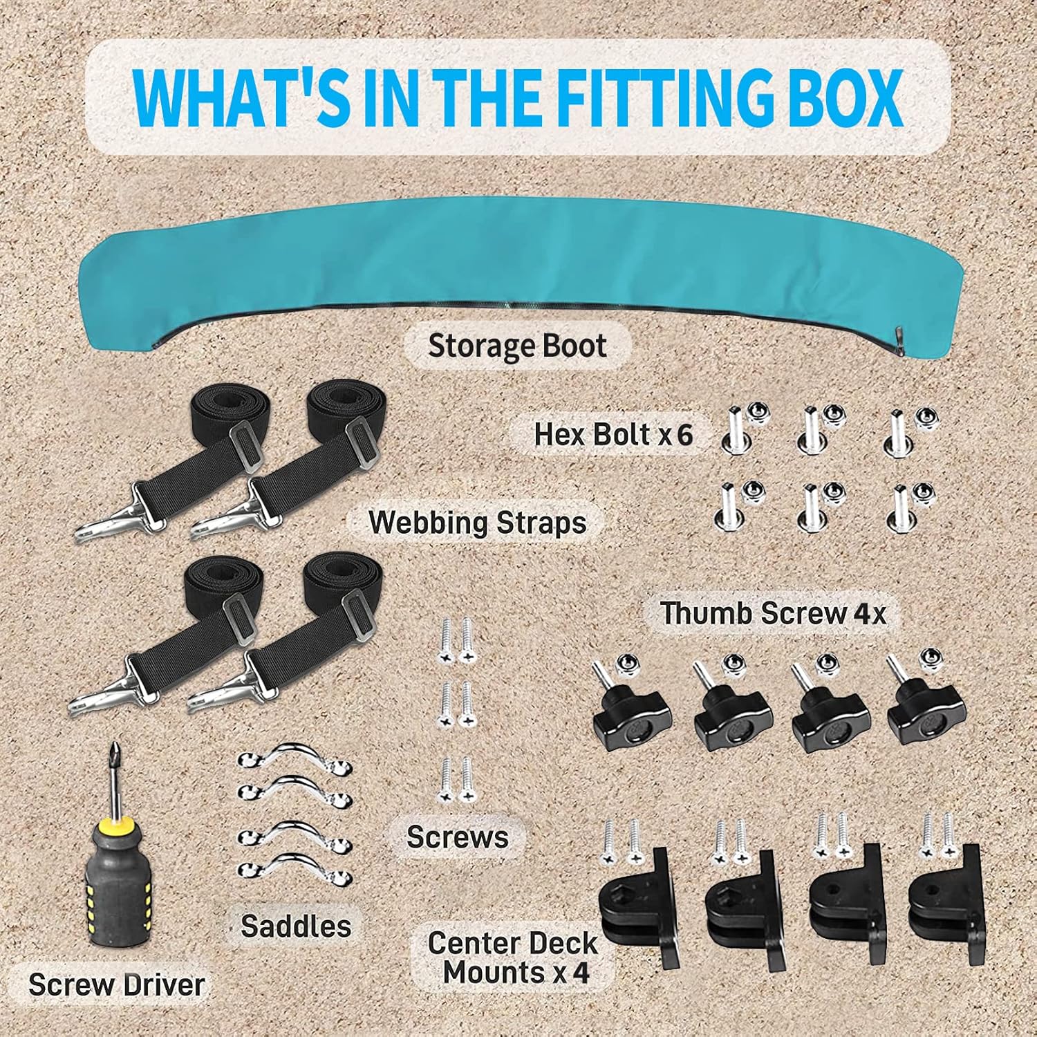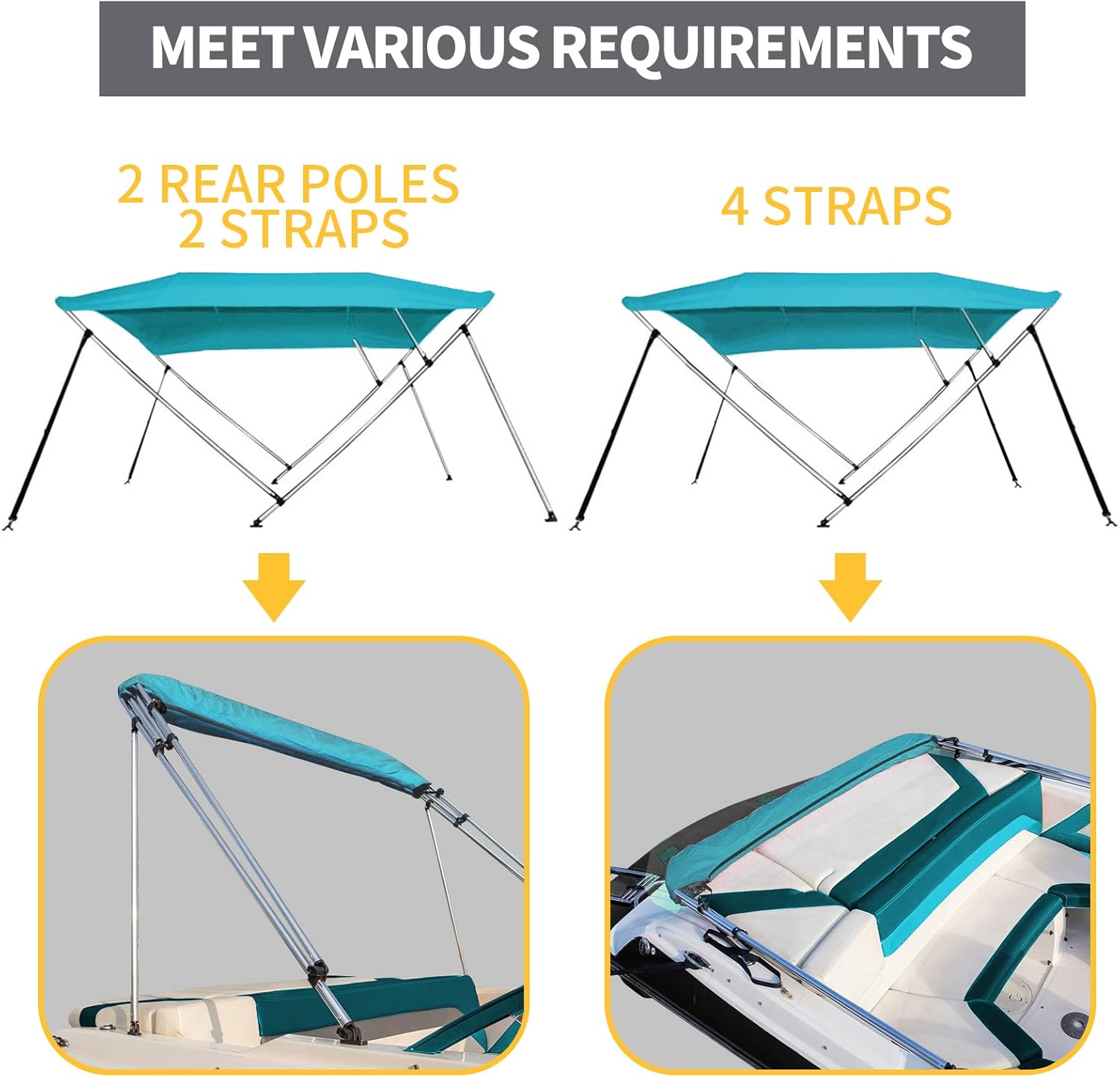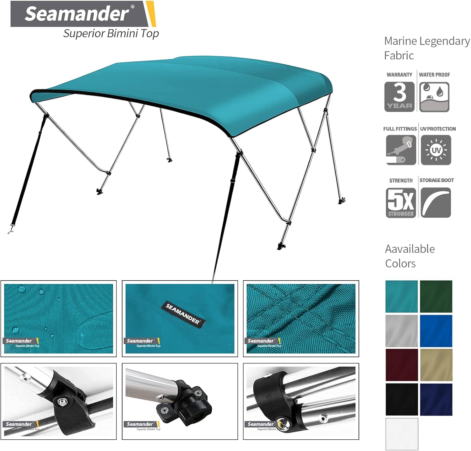 Seamander Bimini Top Boat Cover Top is made of 8.5 oz. 600D marine-grade polyester with double PU back coating fabric and 1" Dia. Anodizing Aluminum Frame. This item contains all hardware including: S.S. Saddles, S.S. screws, S.S. Hooks, Nylon Deck Mounts, Jaw slides etc. Seamander Bimini Top Boat Cover Top is a Two straps &Support pole for front and rear with storage boot. Packing List: Bimini Top Canopy x 1PCS Bimini Top Storage Boot x 1PCS Bimini Top Frame x 1 SET Bimini Top Hardware Box x 1PCS Installation Paper x 1PCS Bimini Top Hardware Box contains: Thumb Screws x 4PCS Nylon Deck Mount x 2PCS Nylon Straps with S.S. Hook x 2Sets S.S. Saddle x 2PCS Self-steel screw x 12PCS S.S. Bolt x 6PCS S.S. Hexagonal Nut x 8PCS Note: This item is partially assembled and packaged. one or two people can well accomplish the job in few minutes.